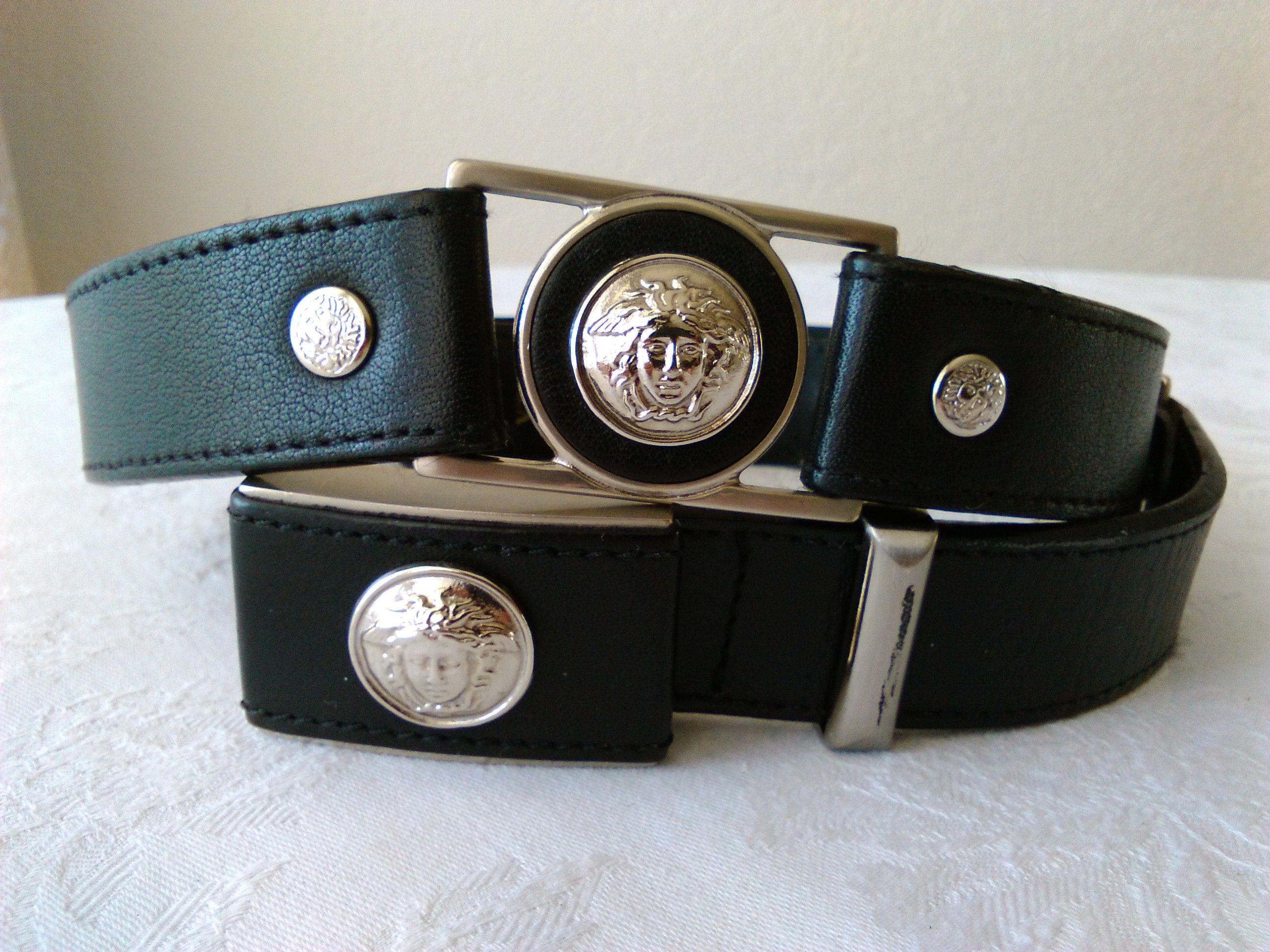 Really very RARE, fabulous Leather Belt signed by mythical GIANNI VERSACE, Pre-death 1997 Collection. Studded buckle decorated with Medusa's Head on the buckle and