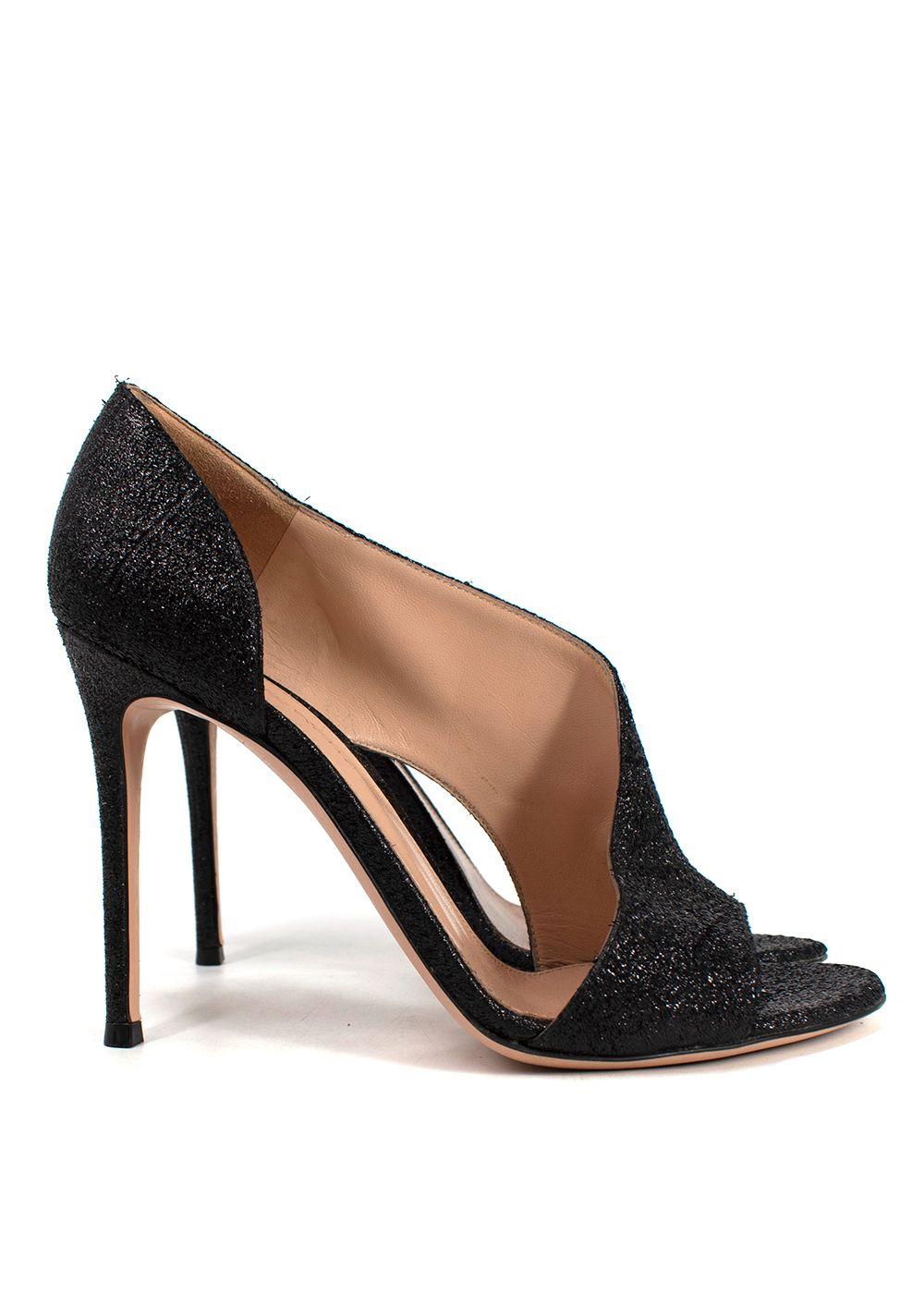 Gianvito Rossi Black Glitter Demi Heels