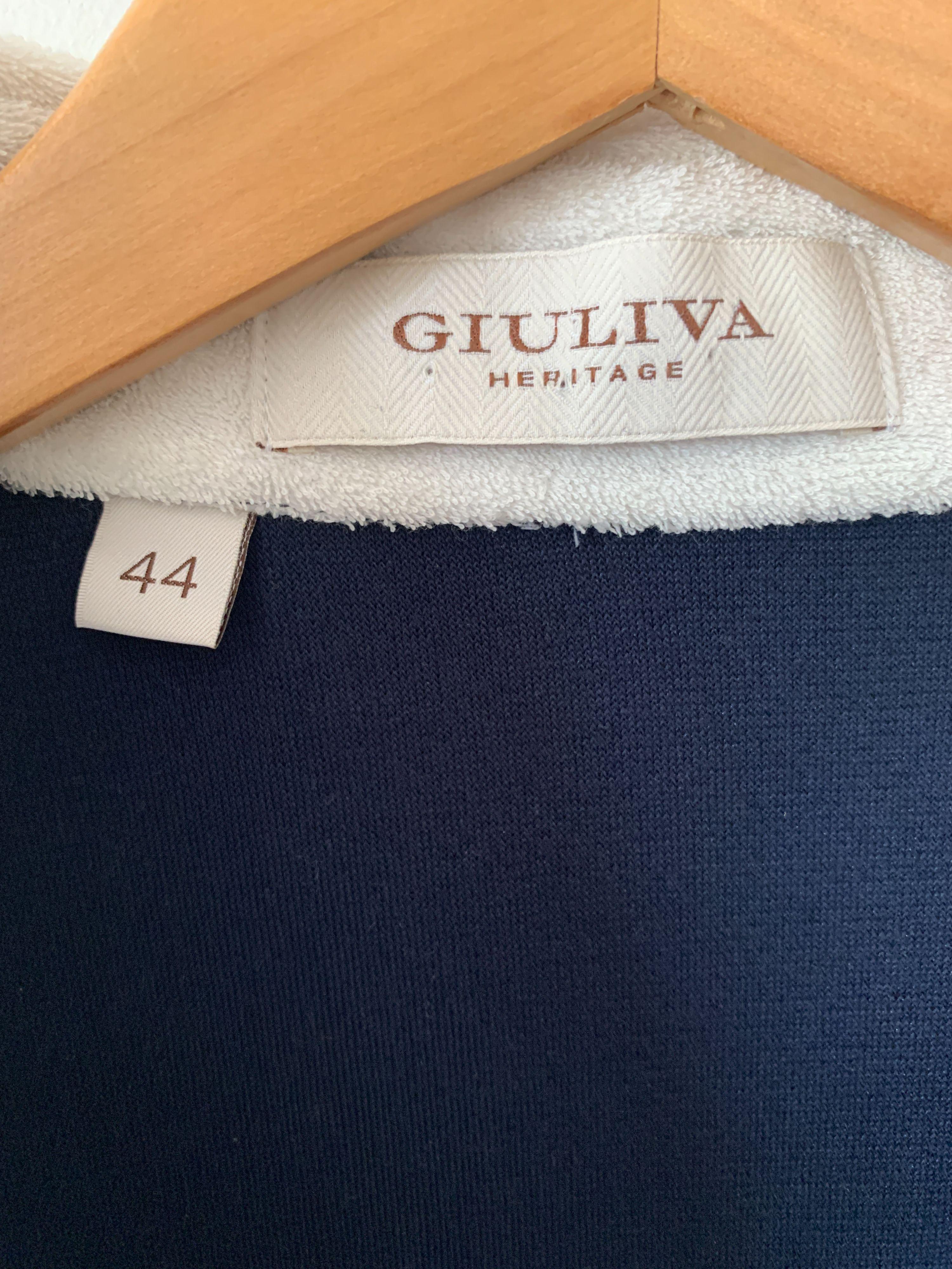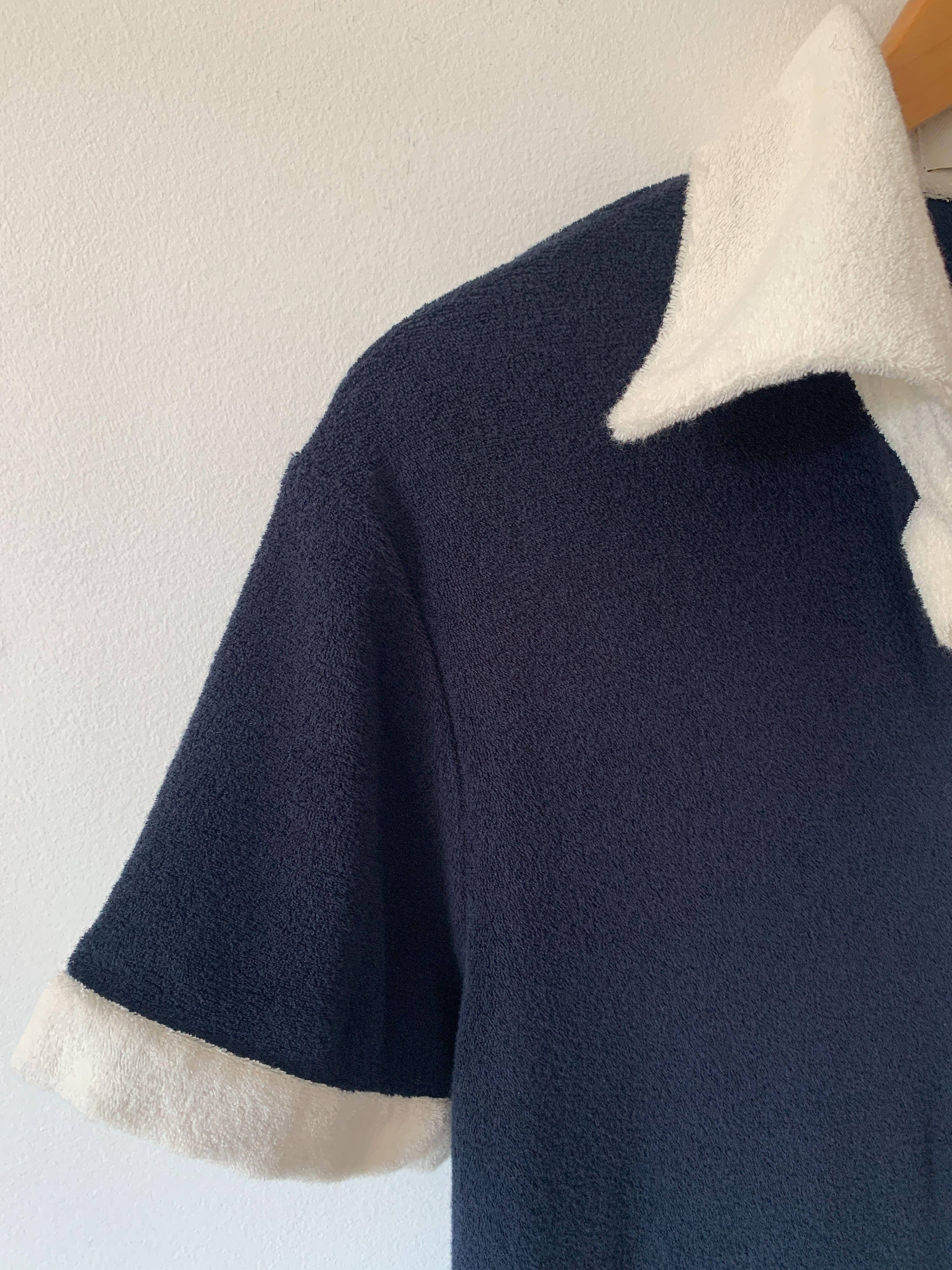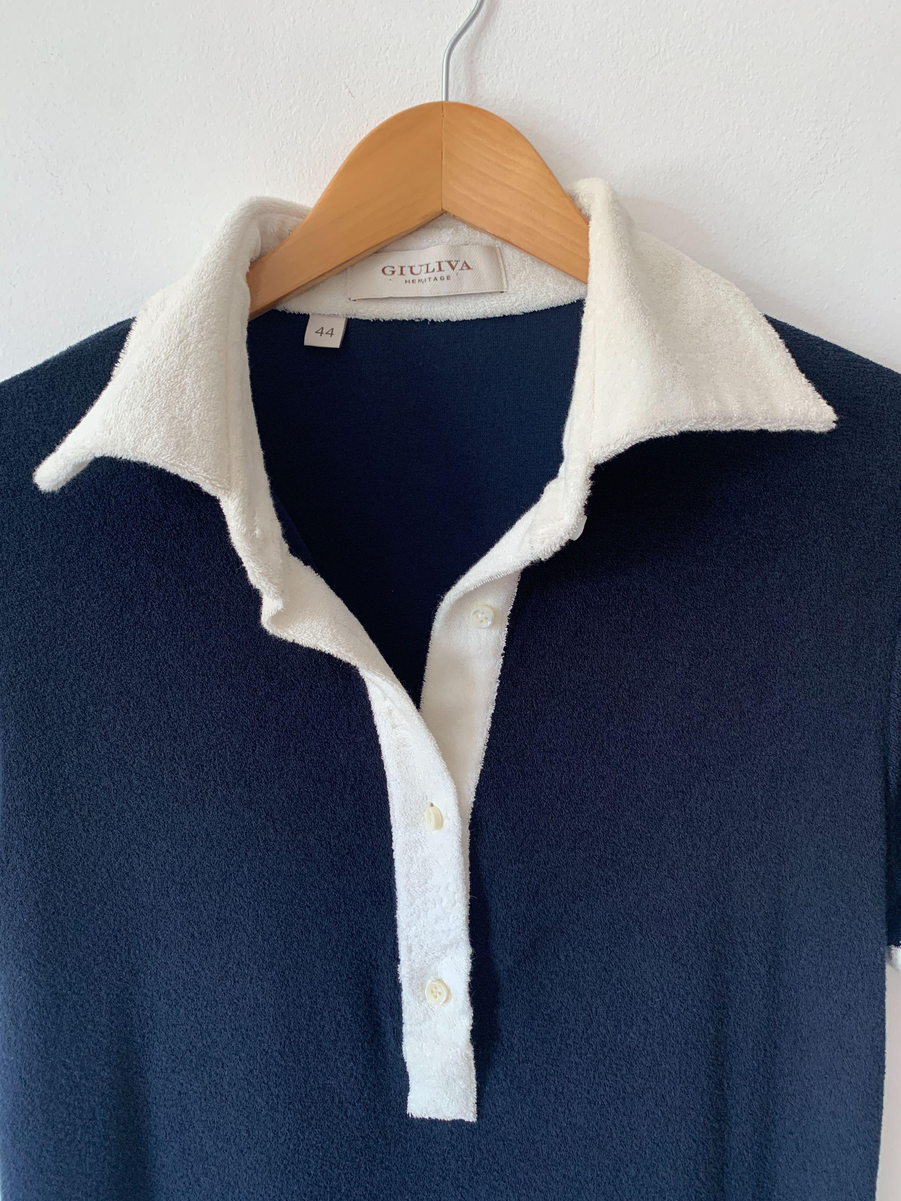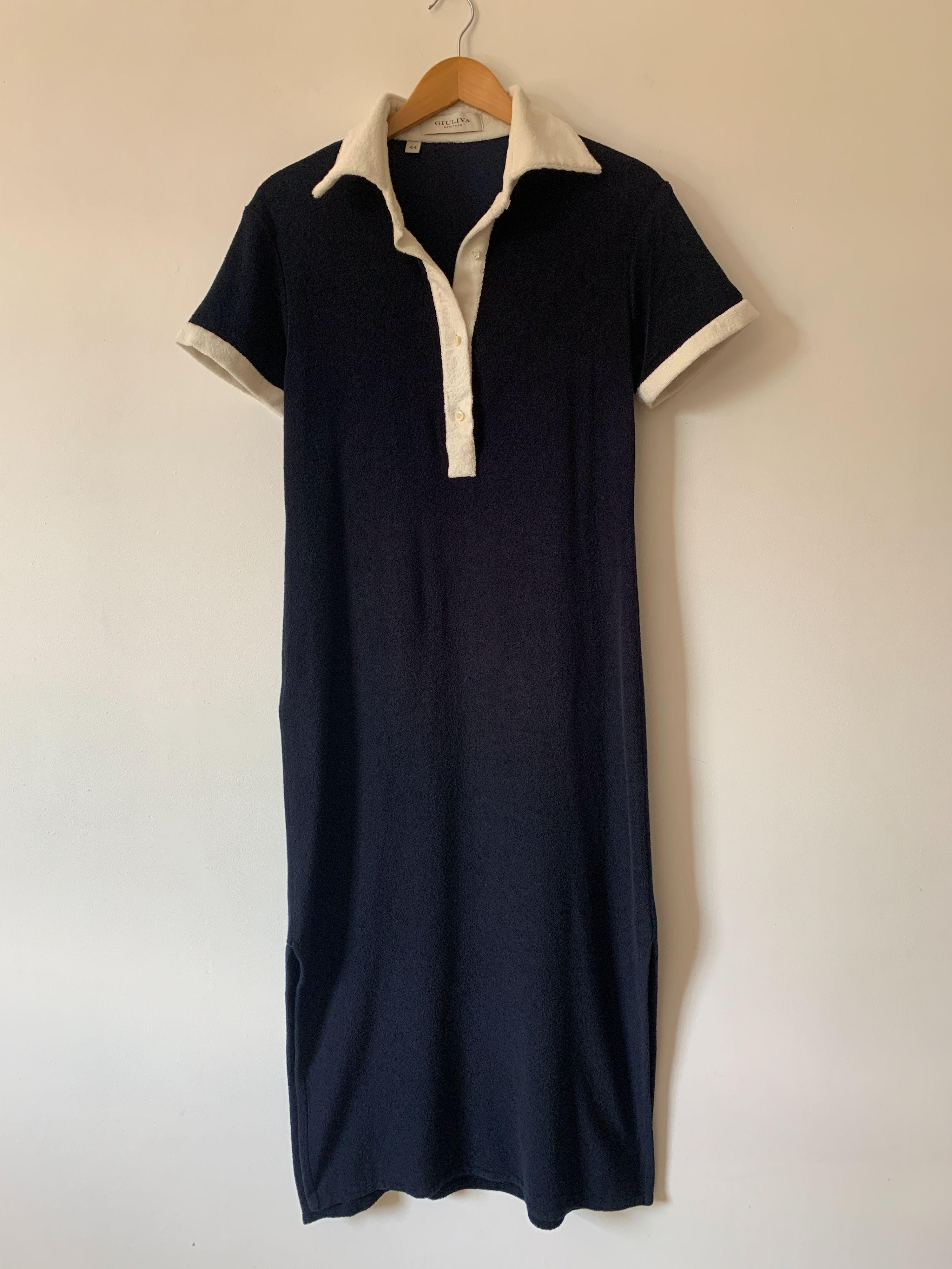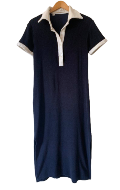 GIULIVA HERITAGE Daphne navy & cream terrycloth polo midi dress with side splits