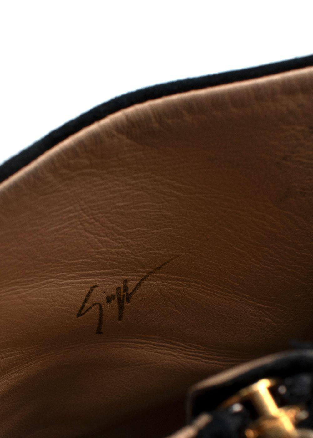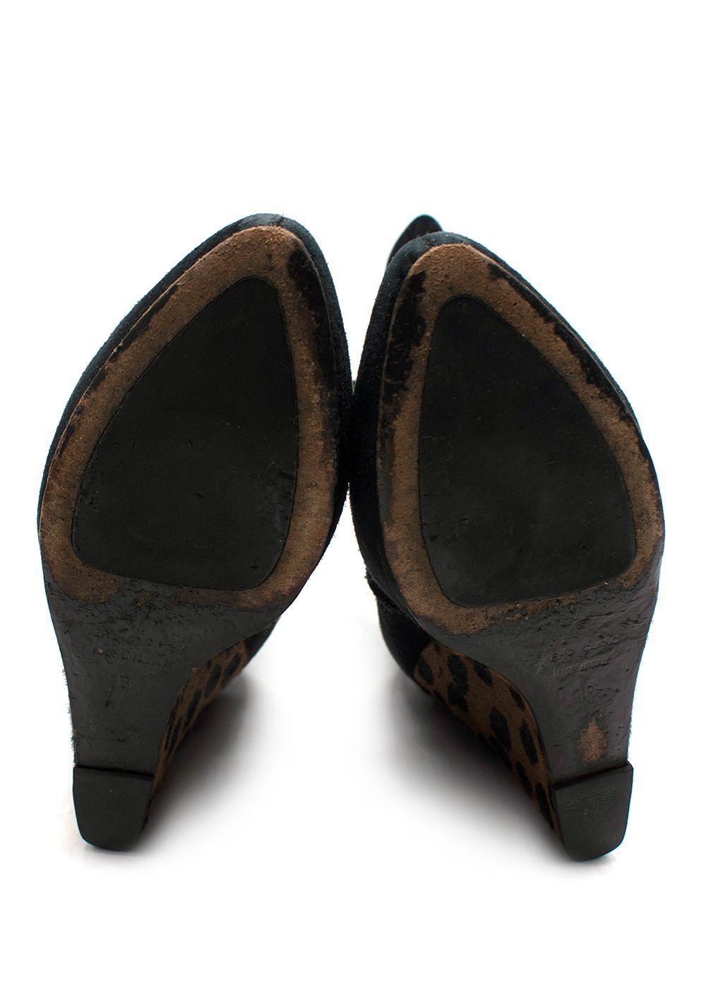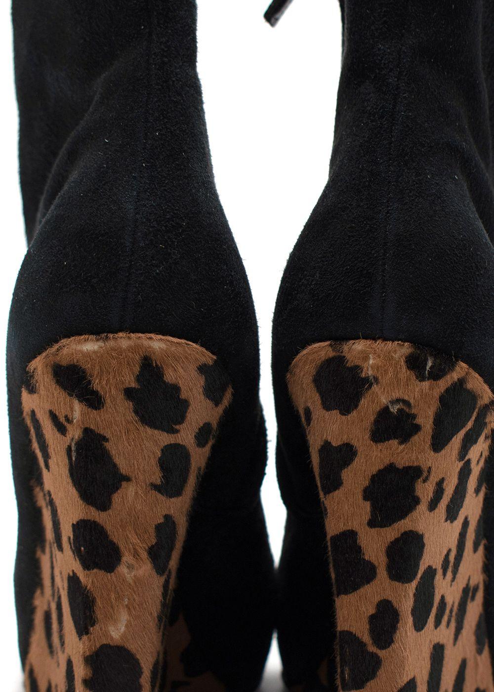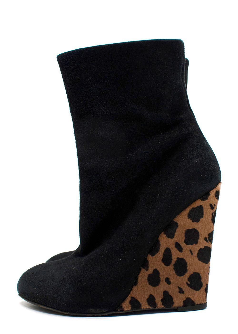 Giuseppe Zanotti Black Suede Wedge Ankle Boots Leopard Print Heel