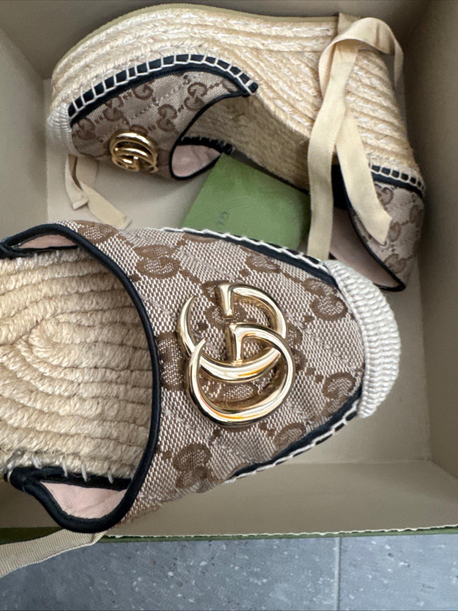 Gucci wedge espadrille shoes. Wedge 13cm but platform 4cm