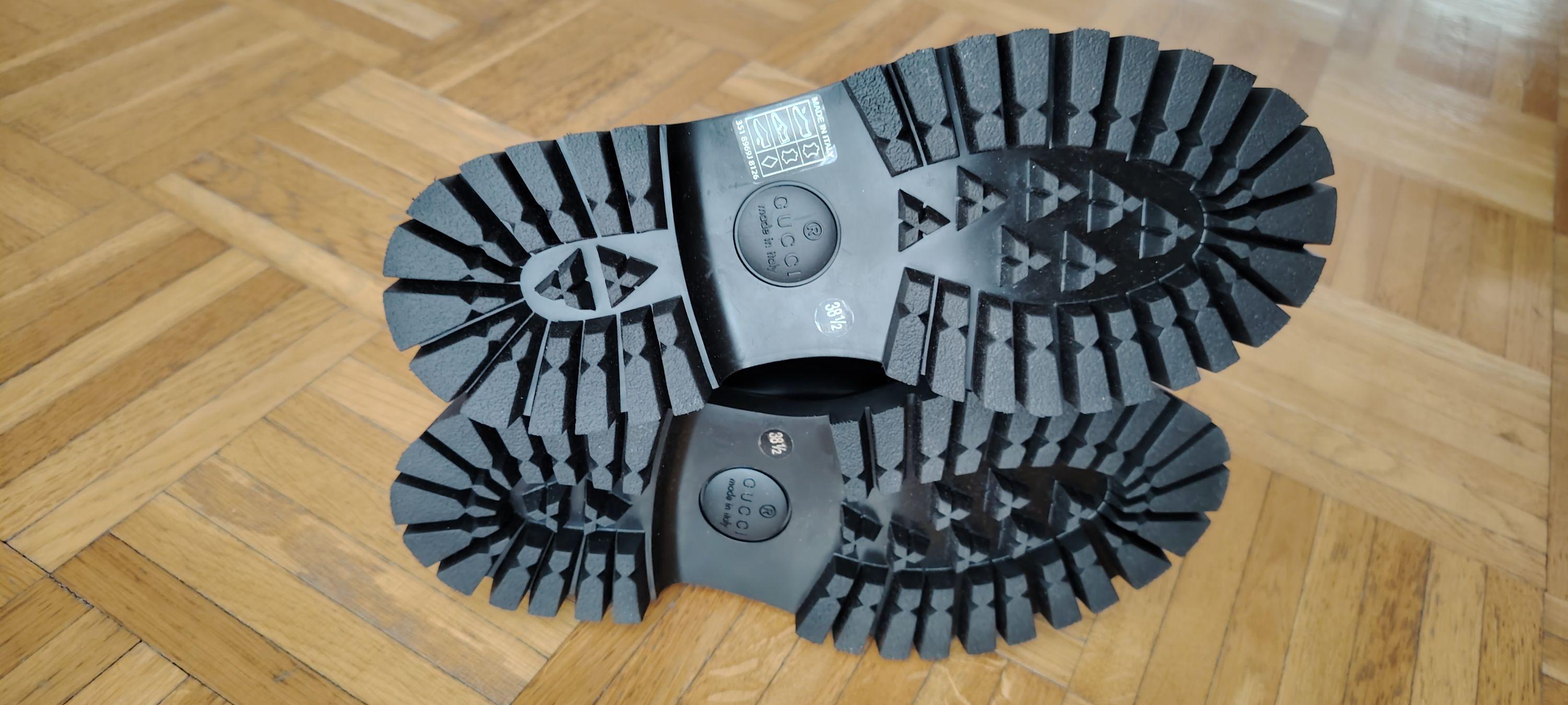GUCCI WOMENS LEATHER LOAFER WITH TIE SOLE.