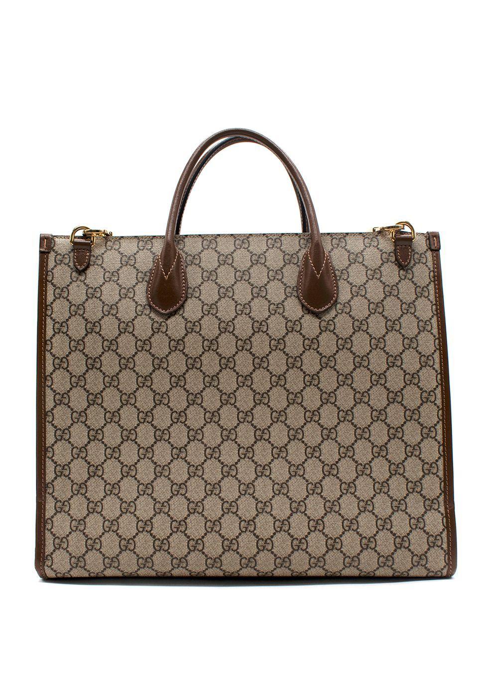 Gucci Brown Retro Monogram Pattern Canvas Tote Bag