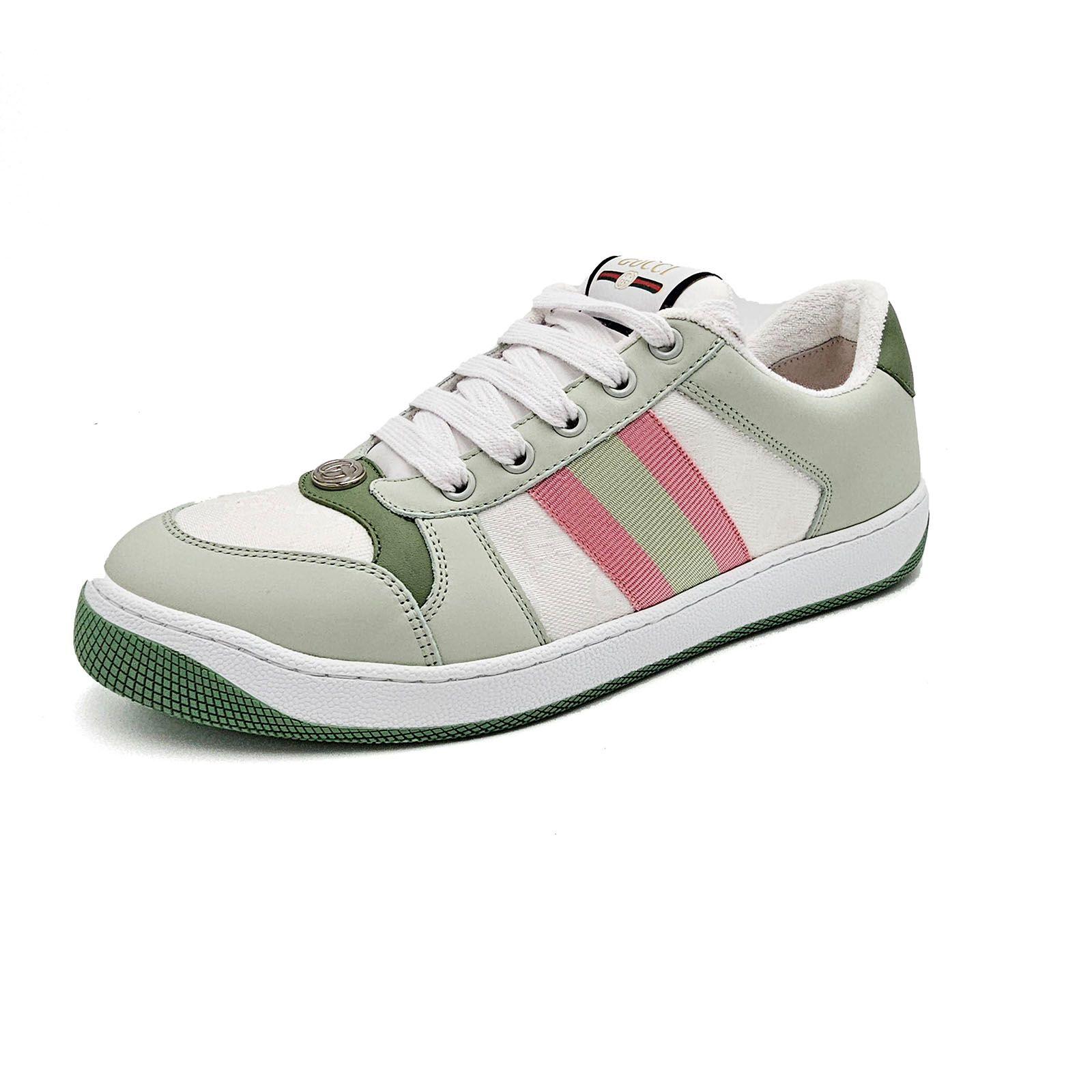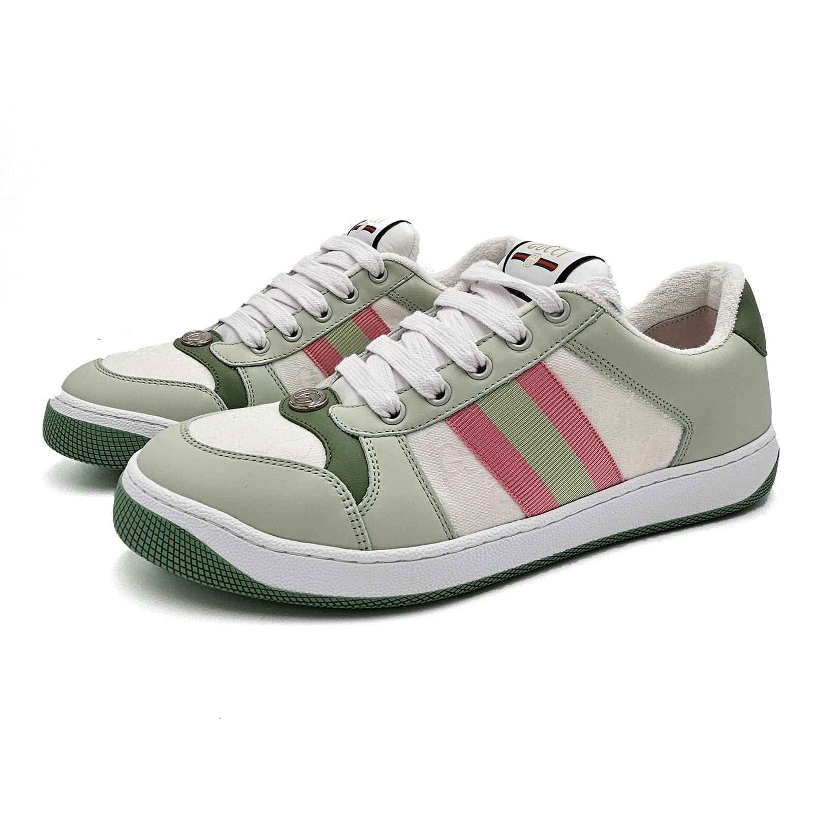 GUCCI Women’s Retro Tennis Sneakers Green & Pink Web Size 39 NEW