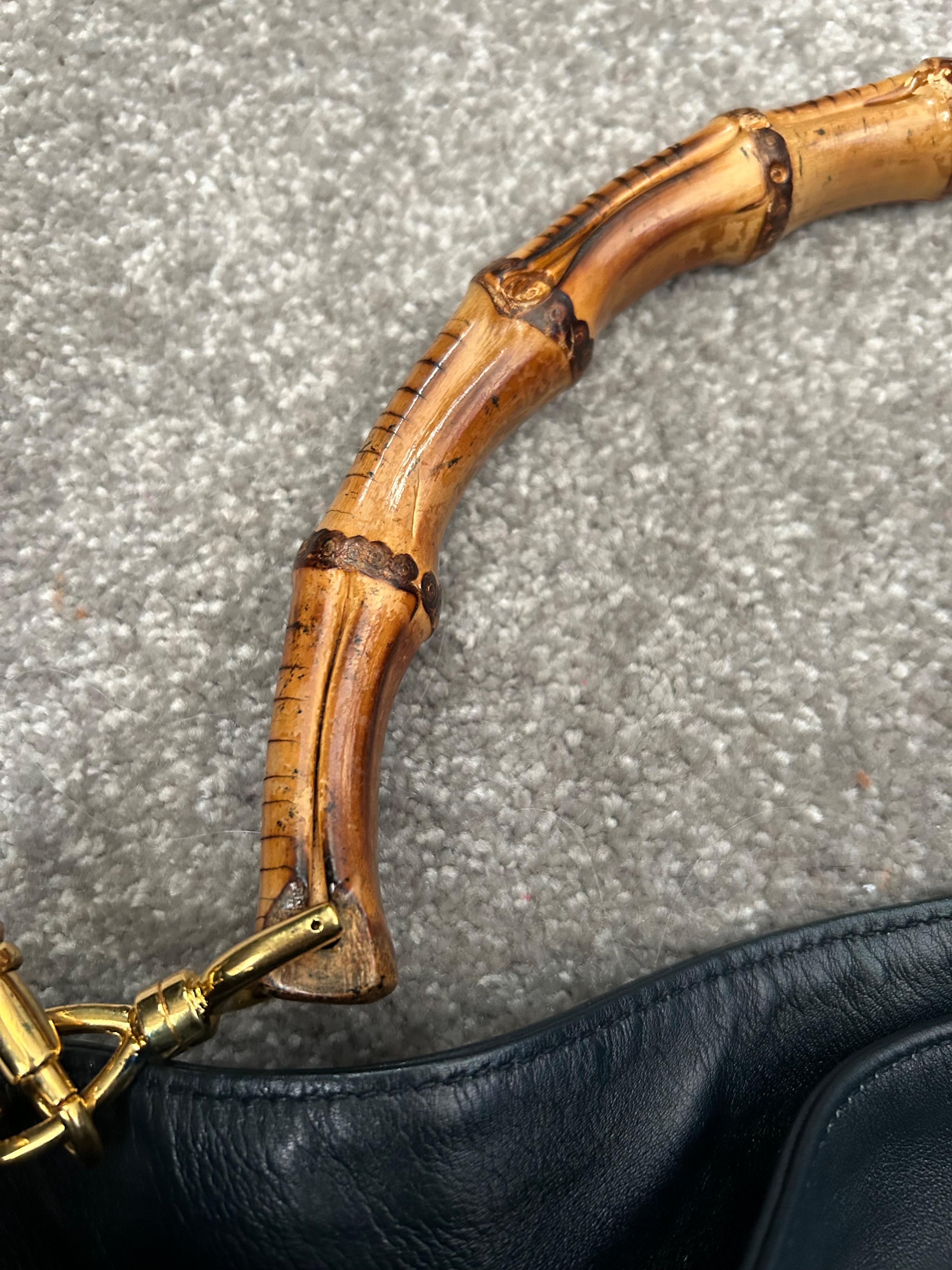 This iconic Gucci Bamboo Large bag comes in a rare deep navy blue colorway — a shade that is almost impossible to find today.
