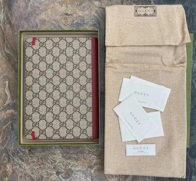 NEW Gucci Canvas Notebook Journal Interlocking Pattern Red Cat with gold pages. Includes dust bag and all the cards that came with it. Perfect condition!