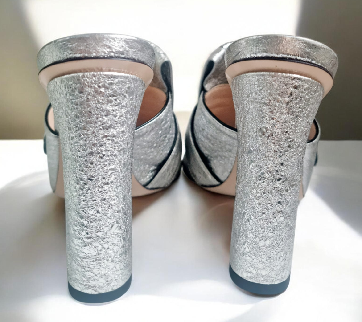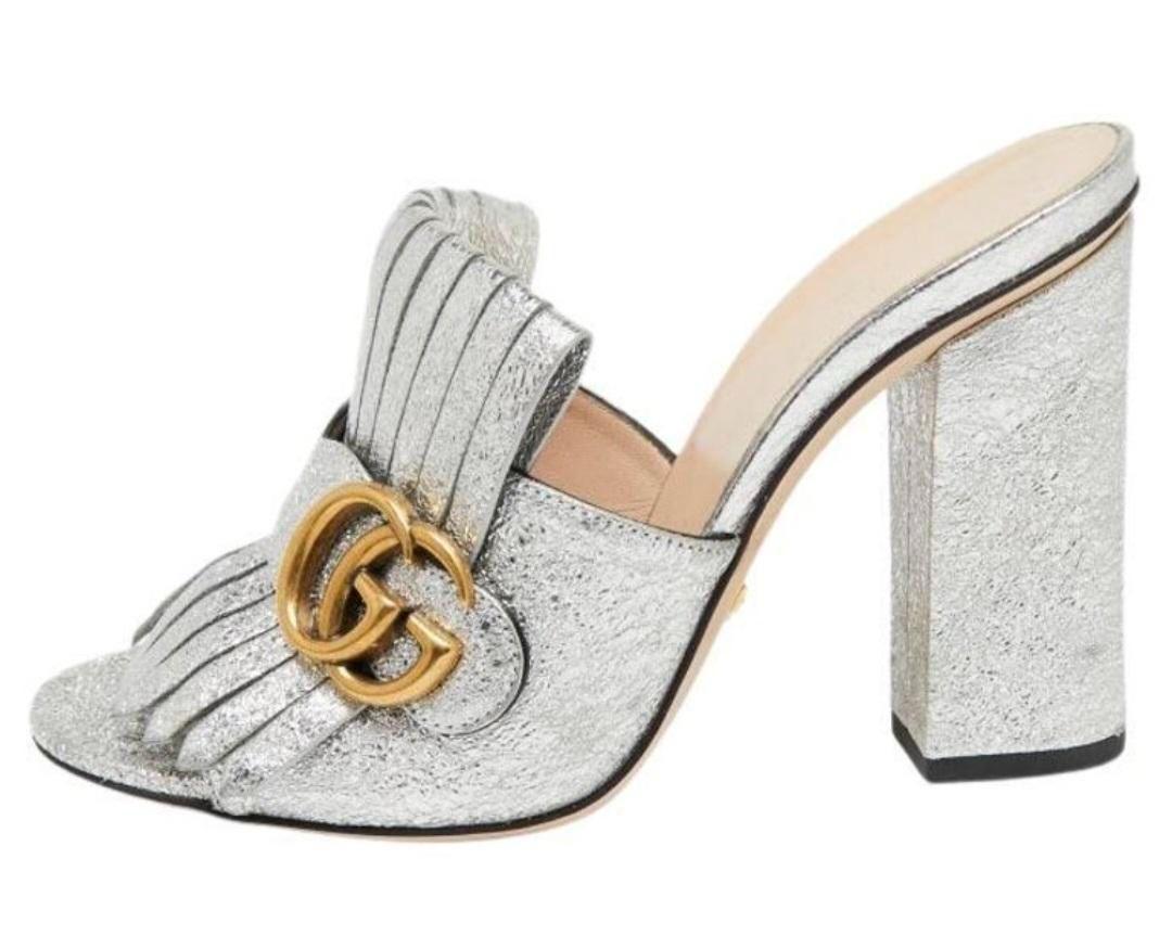 Gucci Silver Heeled Mules