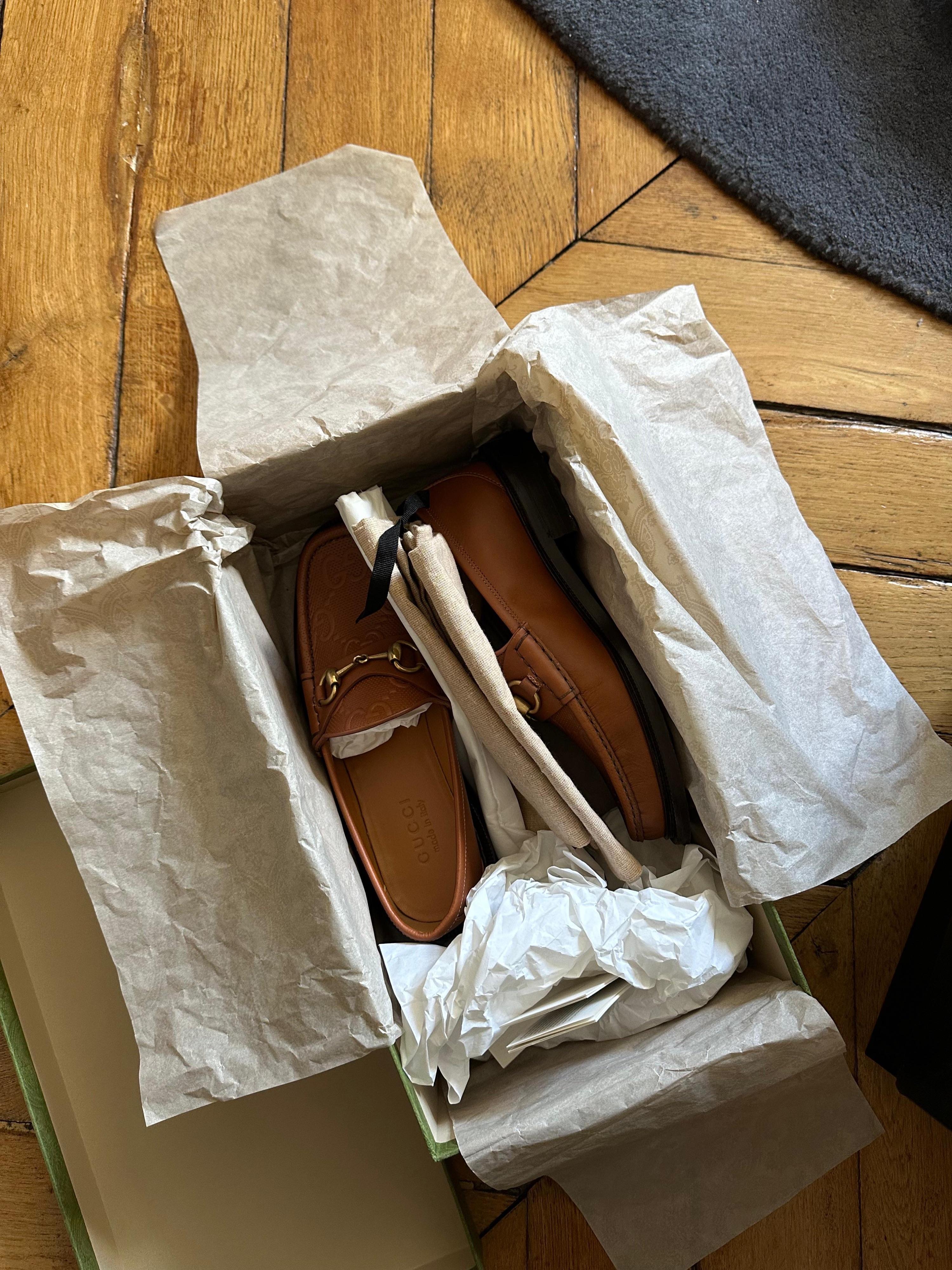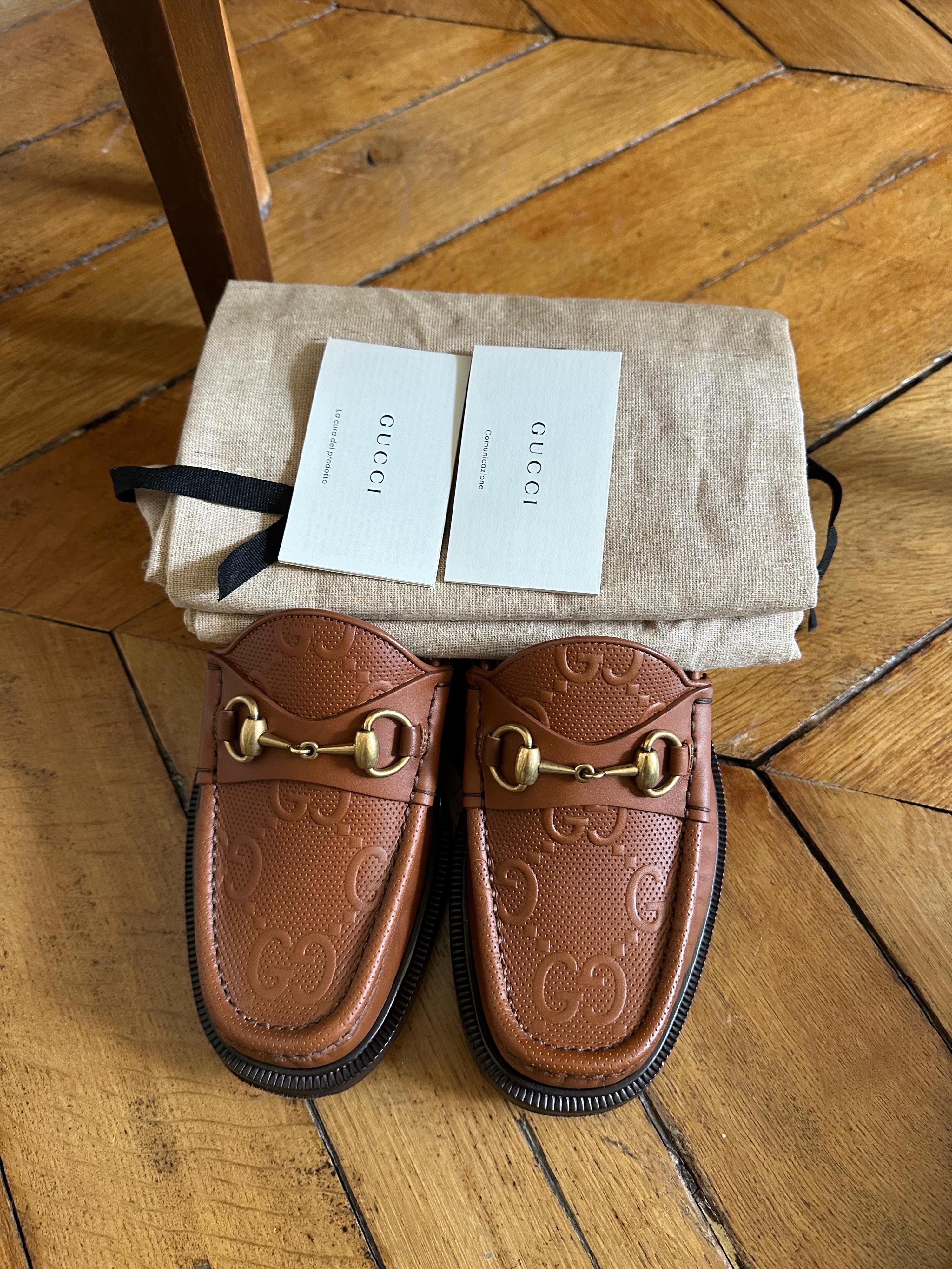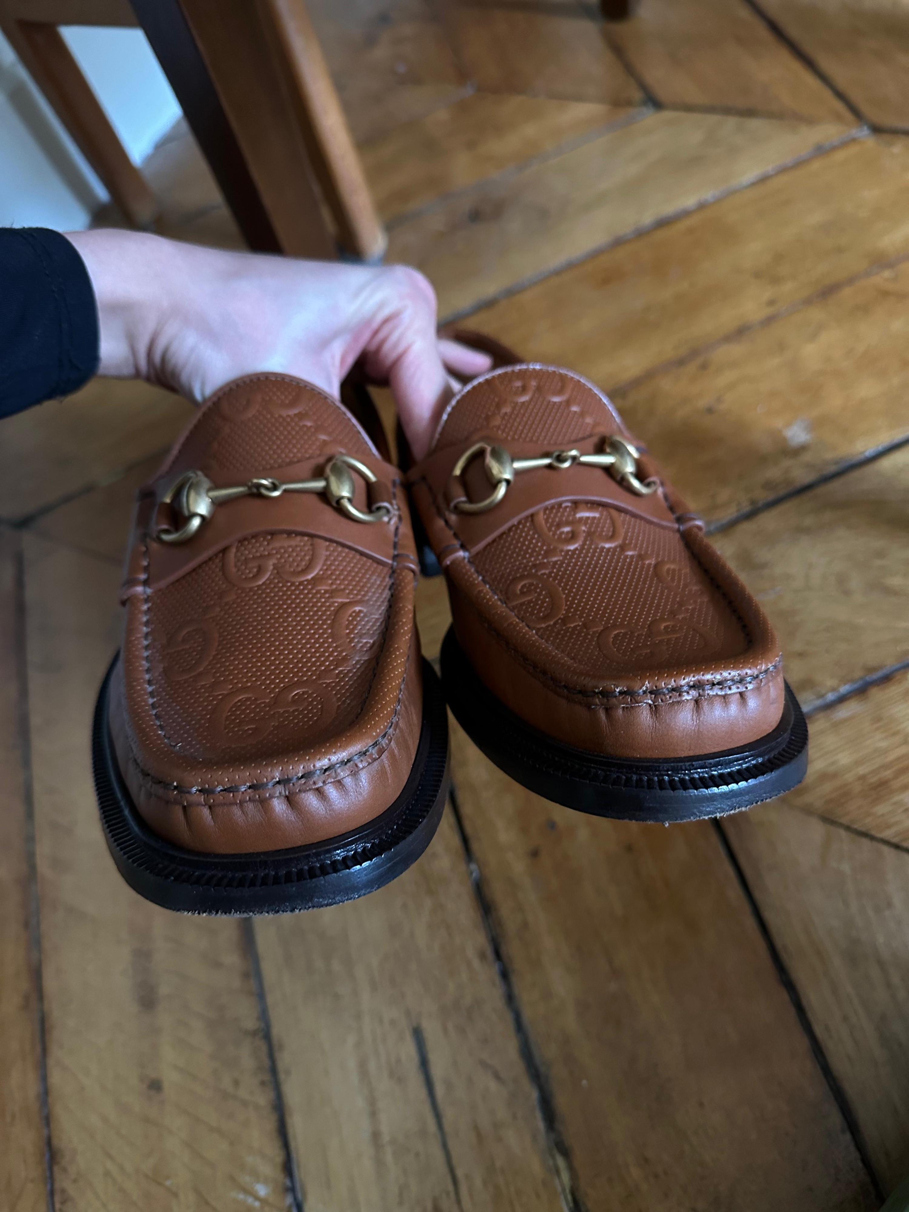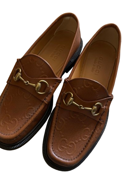 Gucci Tan Embossed Leather Loafers