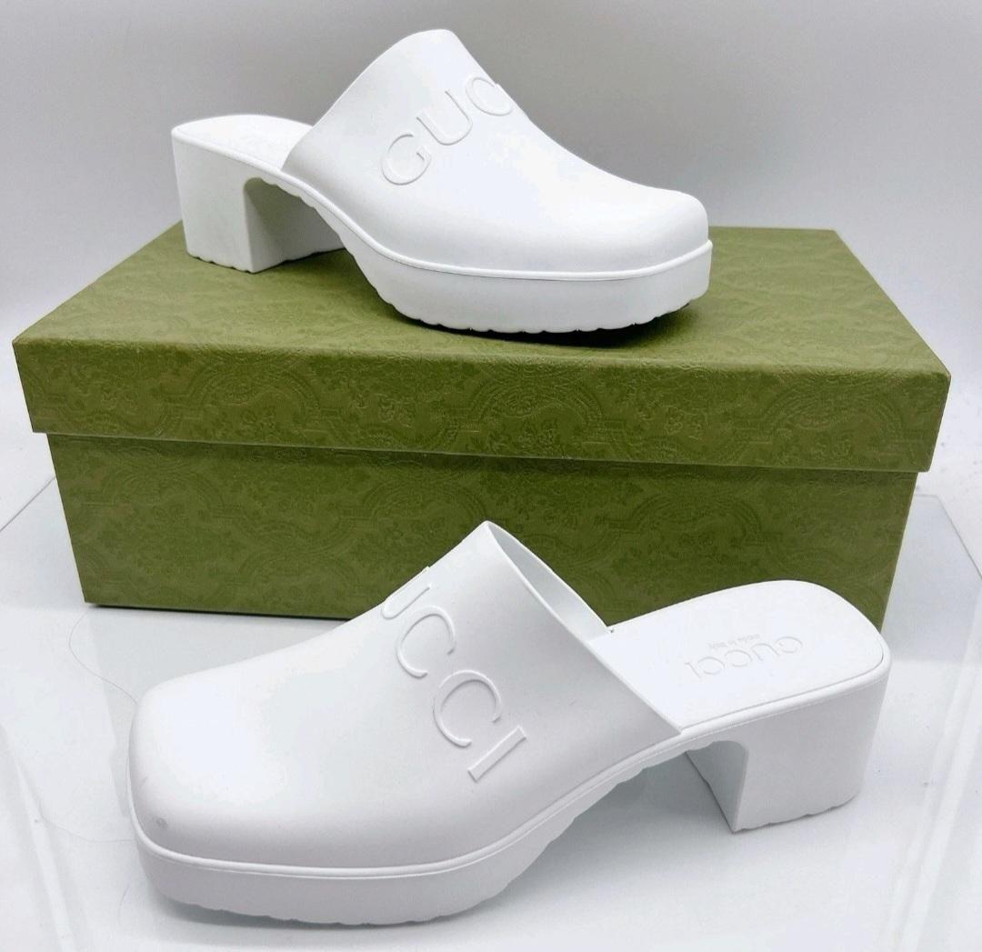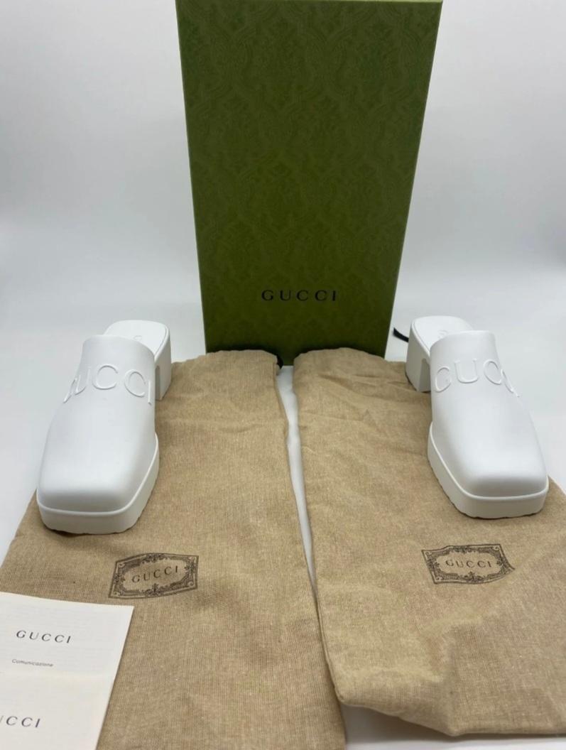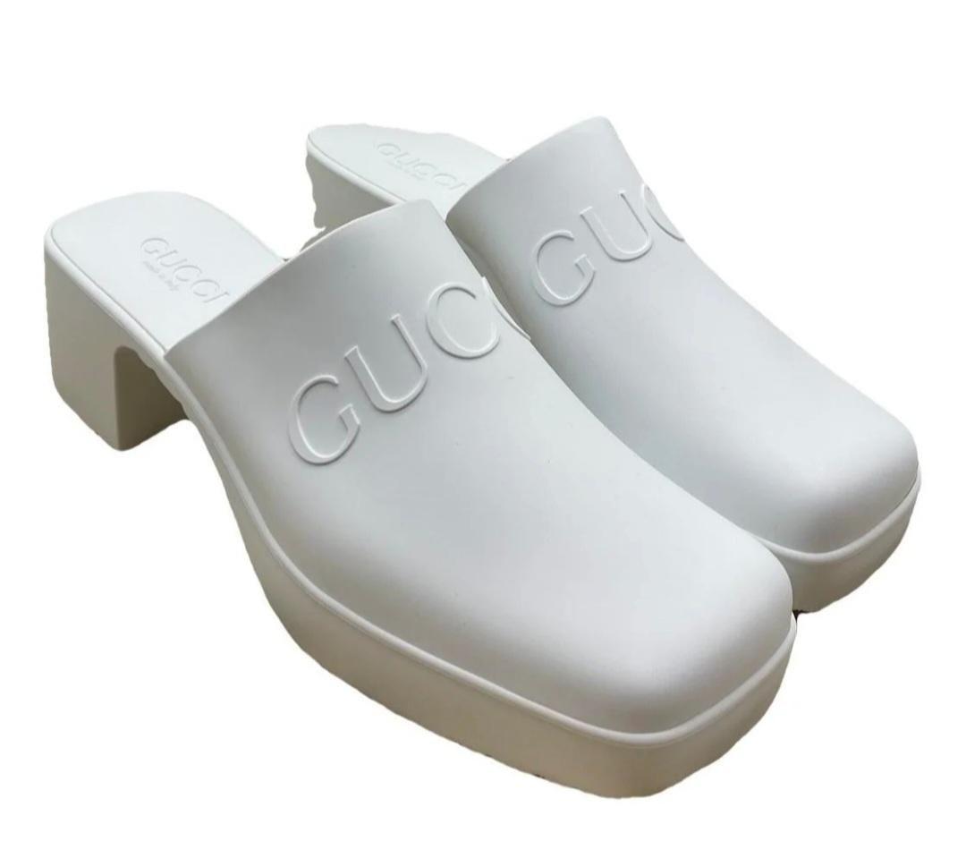 Gucci White Rubber Mules