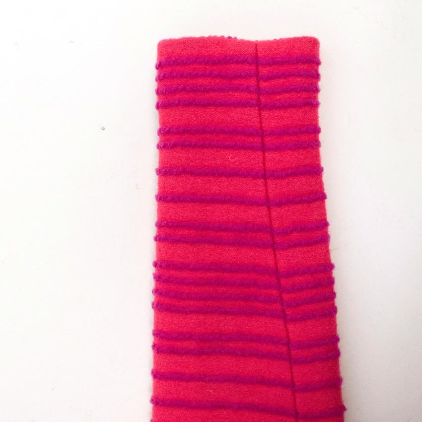 Raised stripe detailing, pink buttons.