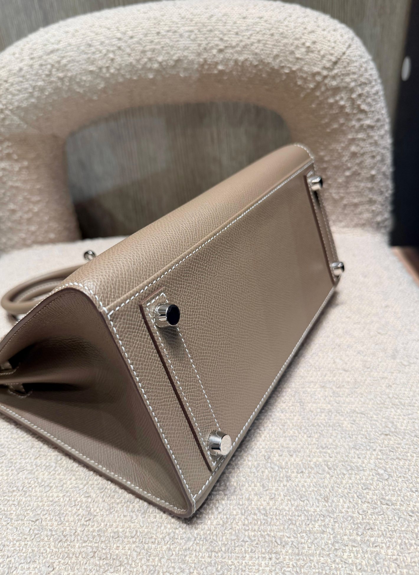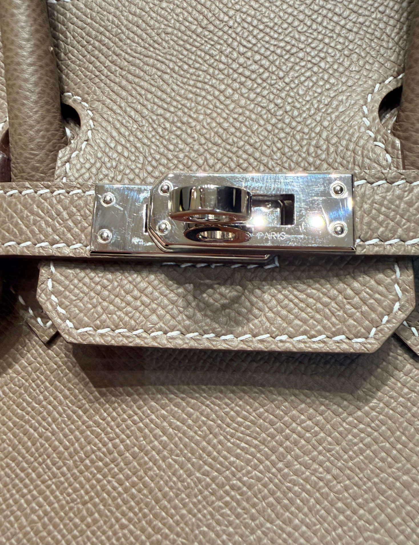 Hermes Birkin 25 Etoupe epsom sellier with palladium hardware. Iconic and discontinued model! Comes full set with original invoice, box and dustbag. W stamp 2024