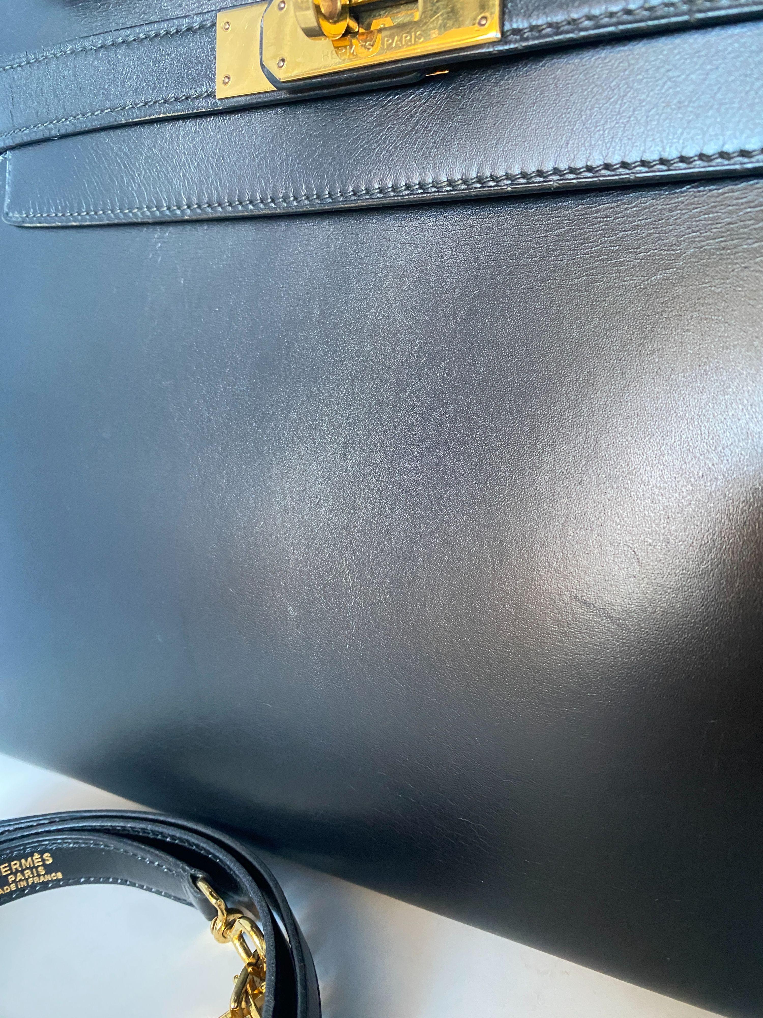 Hermes Black Box Leather Kelly 28 Sellier