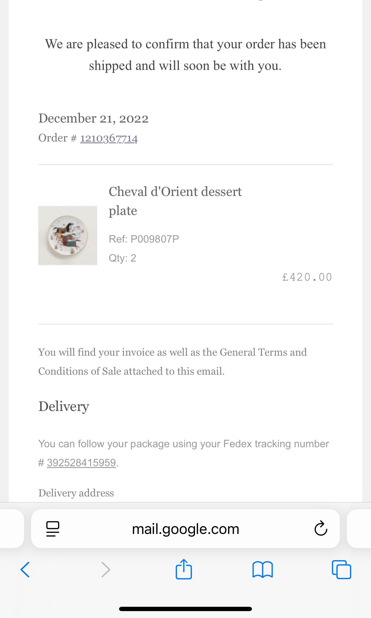 Hermes Cheval D'Orient Desert Plates x2