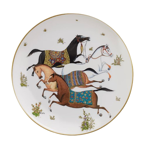 Classic horse desert plates with golden edge.