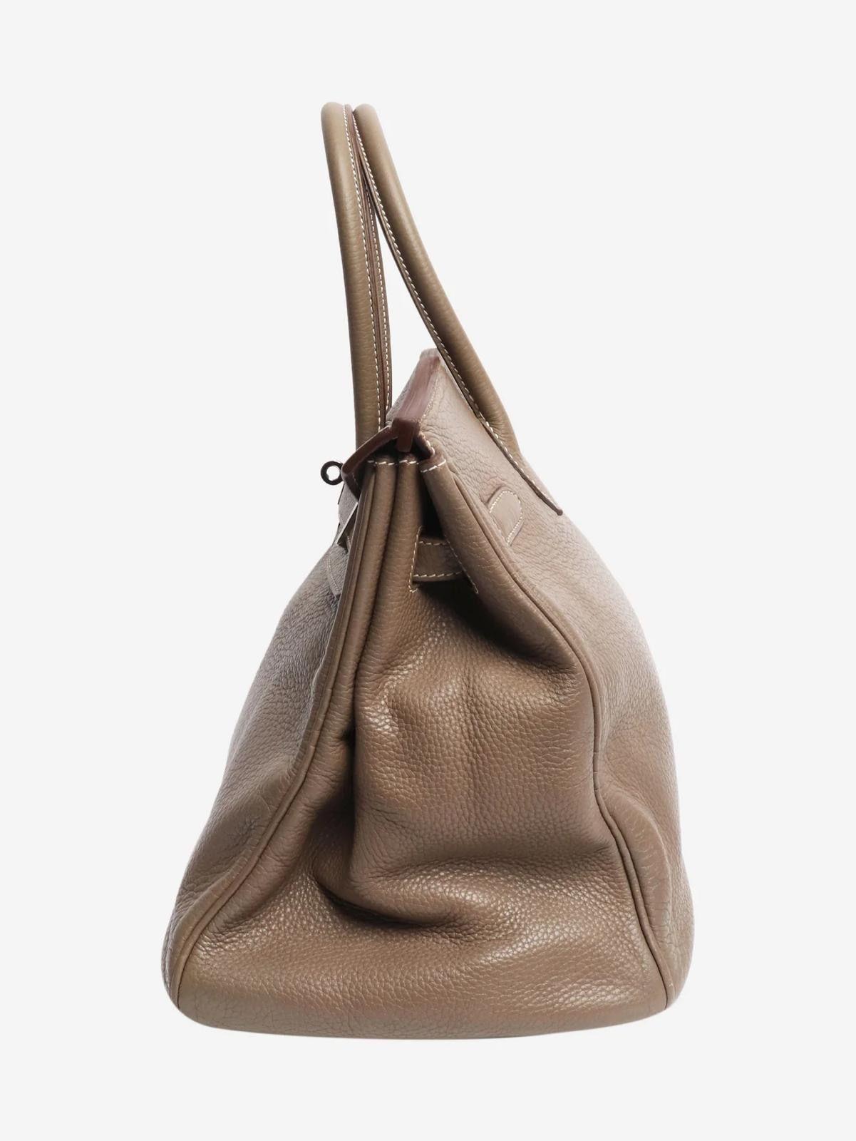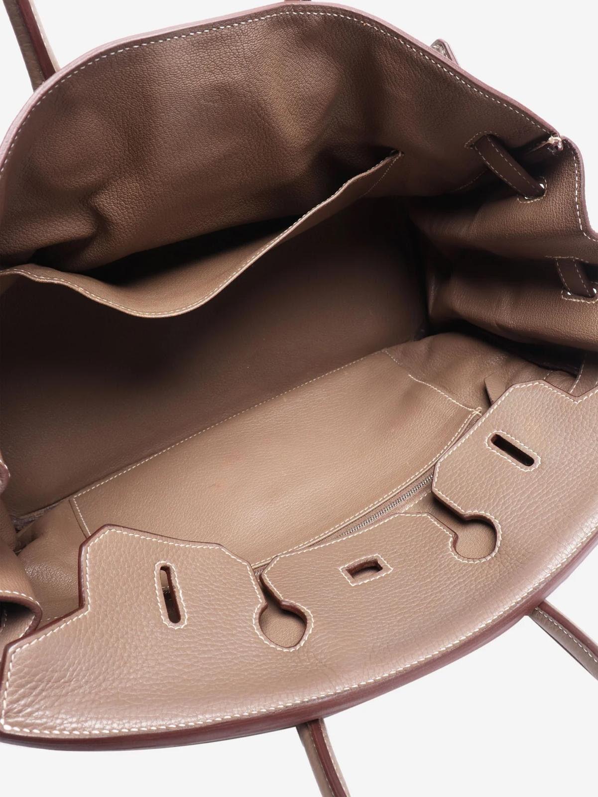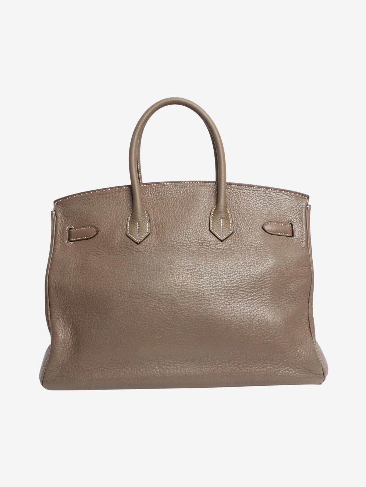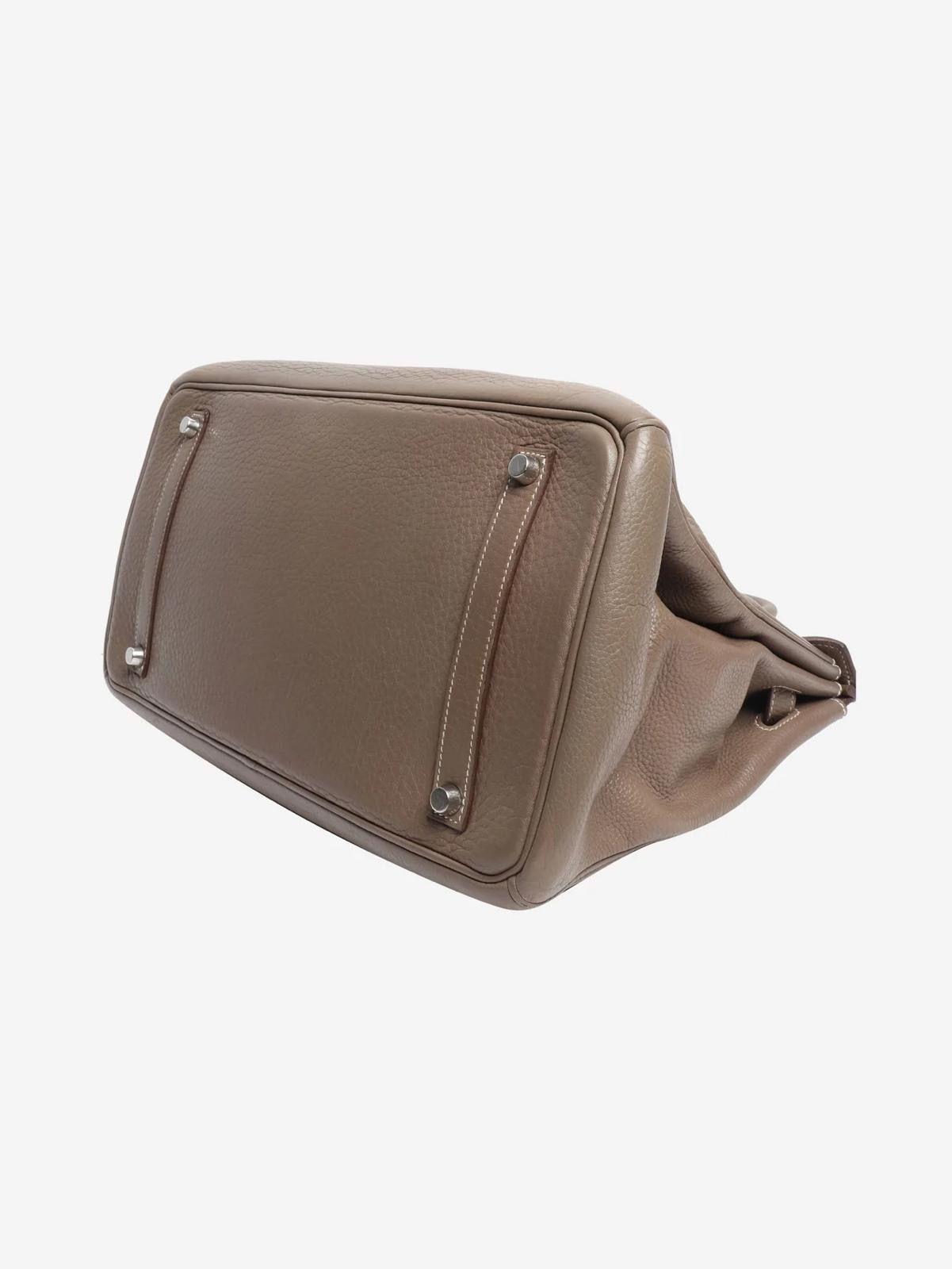 Hermes etoupe 2008 Birkin 35 top handle bag in Clemence leather with palladium hardware. L square ( Hermes spa, new hardware)