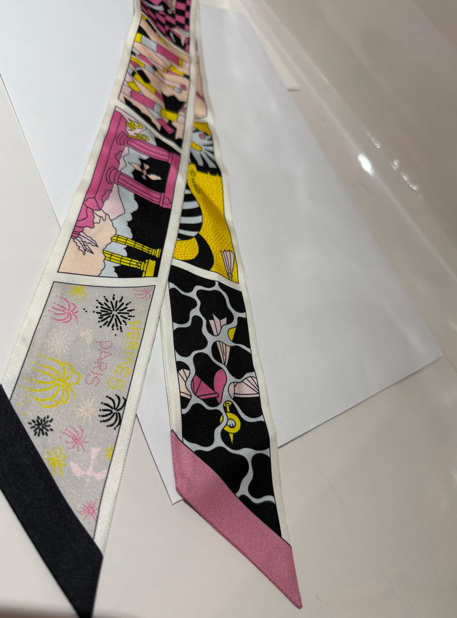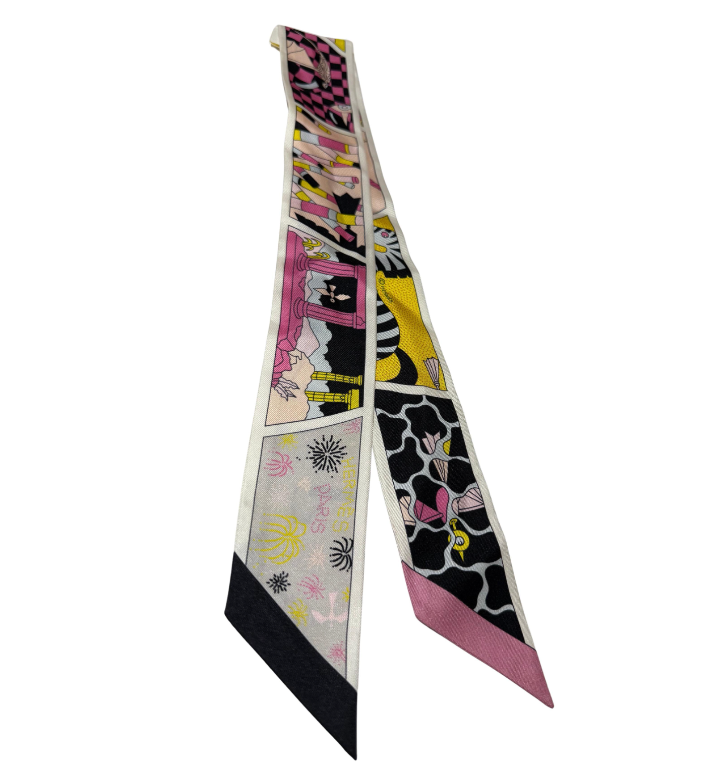 HERMES TWILLY FACTORY SUITE 2023 Collection Noir Rose Jaune Silk 23SS New Ladies. With box and ribbon. Very nice for black bags.