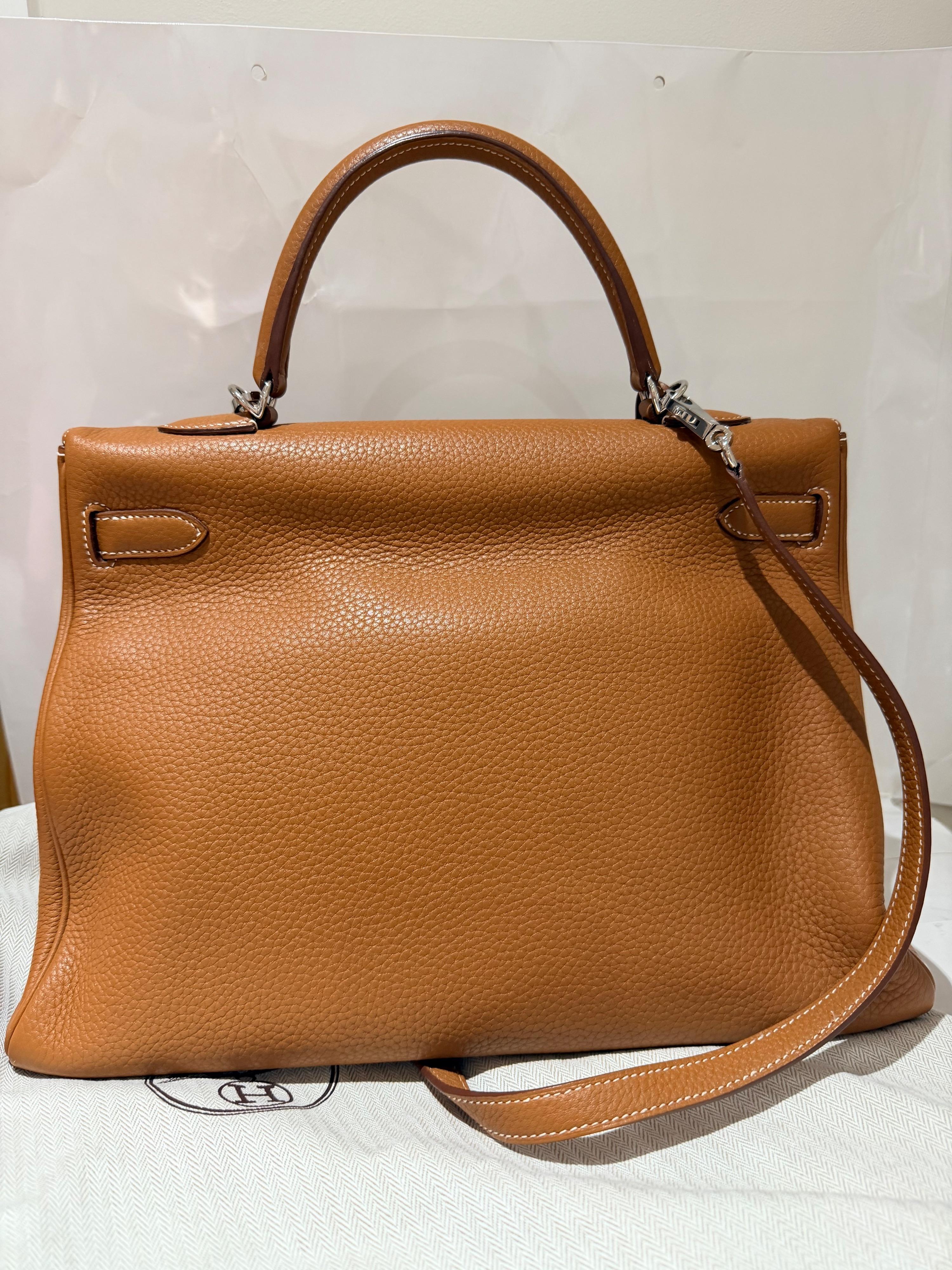 Hermes Kelly 35 gold togo with palladium hardware bag. A classic sophisticated bag for your everyday needs.