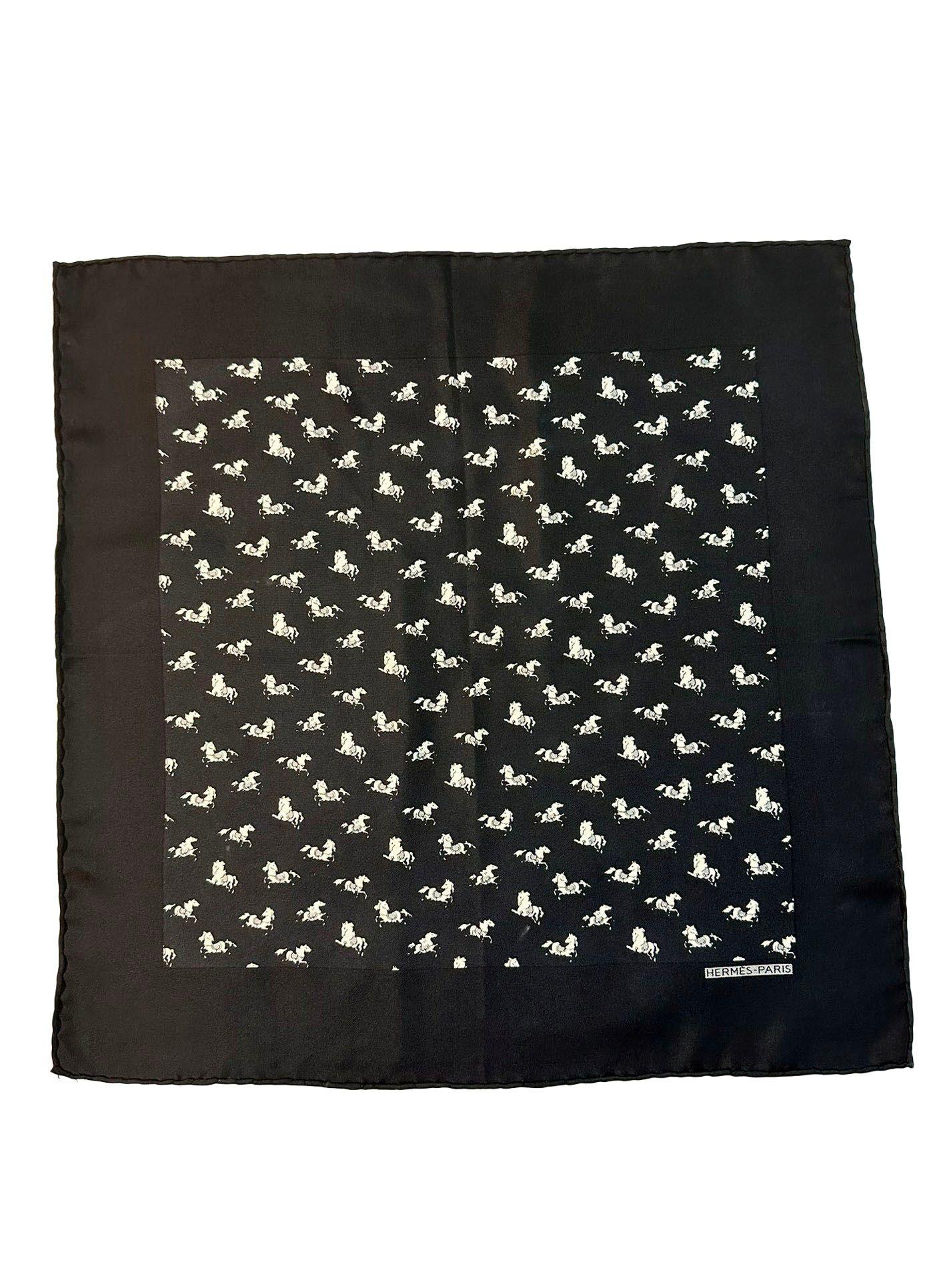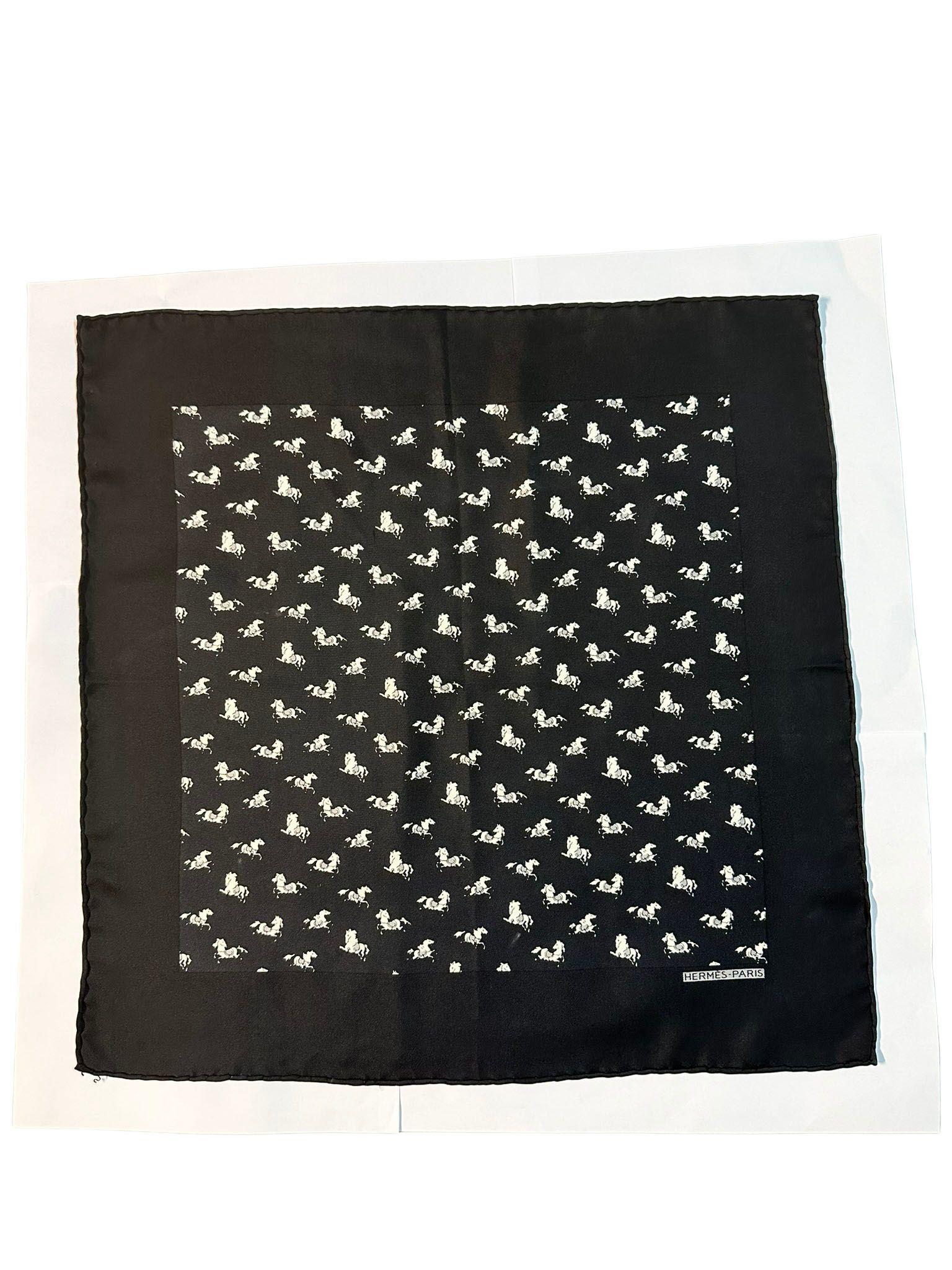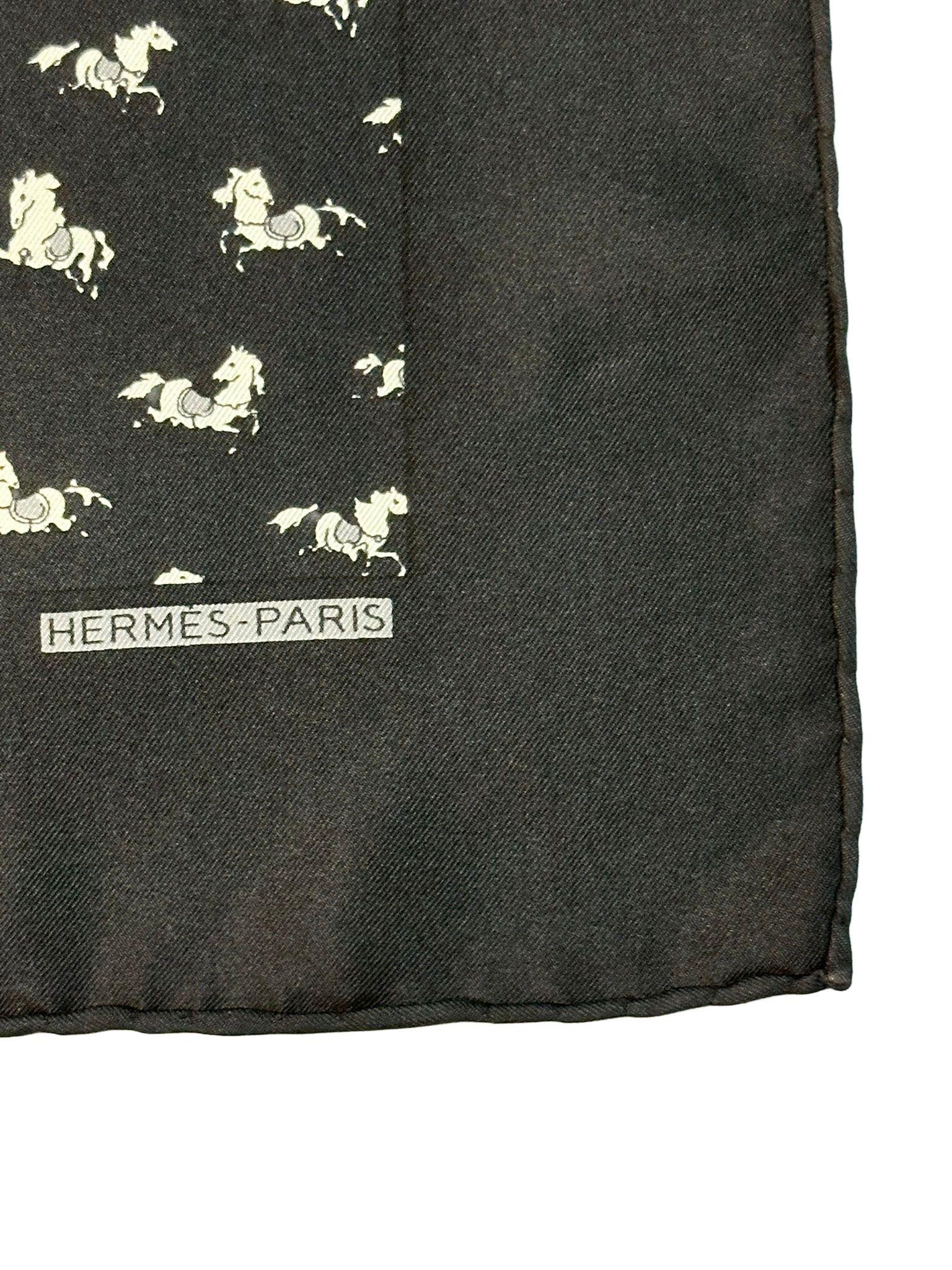 This accessory features a repeating equestrian motif composed of stylized horses, a design theme deeply rooted in the heritage of the Hermès house and its origins as a saddlery workshop.