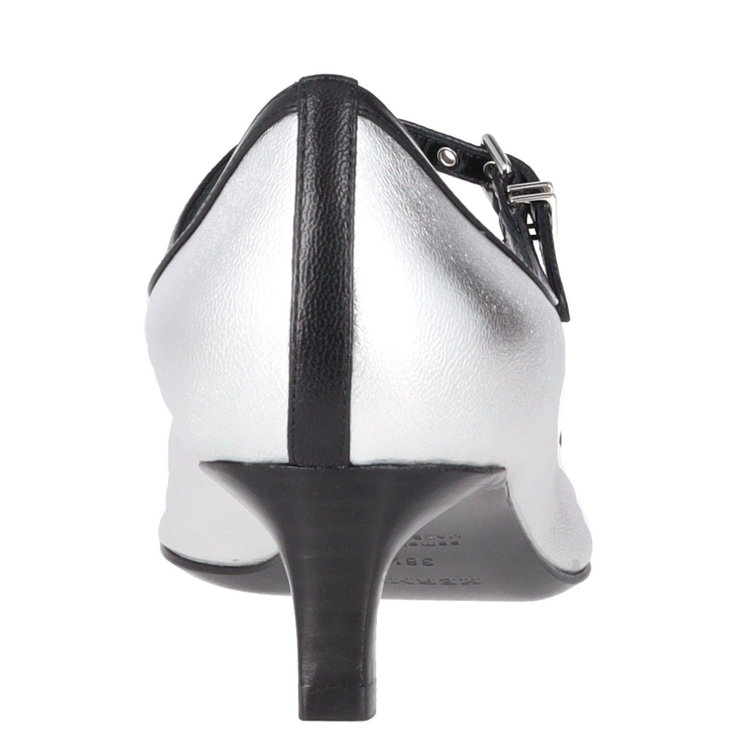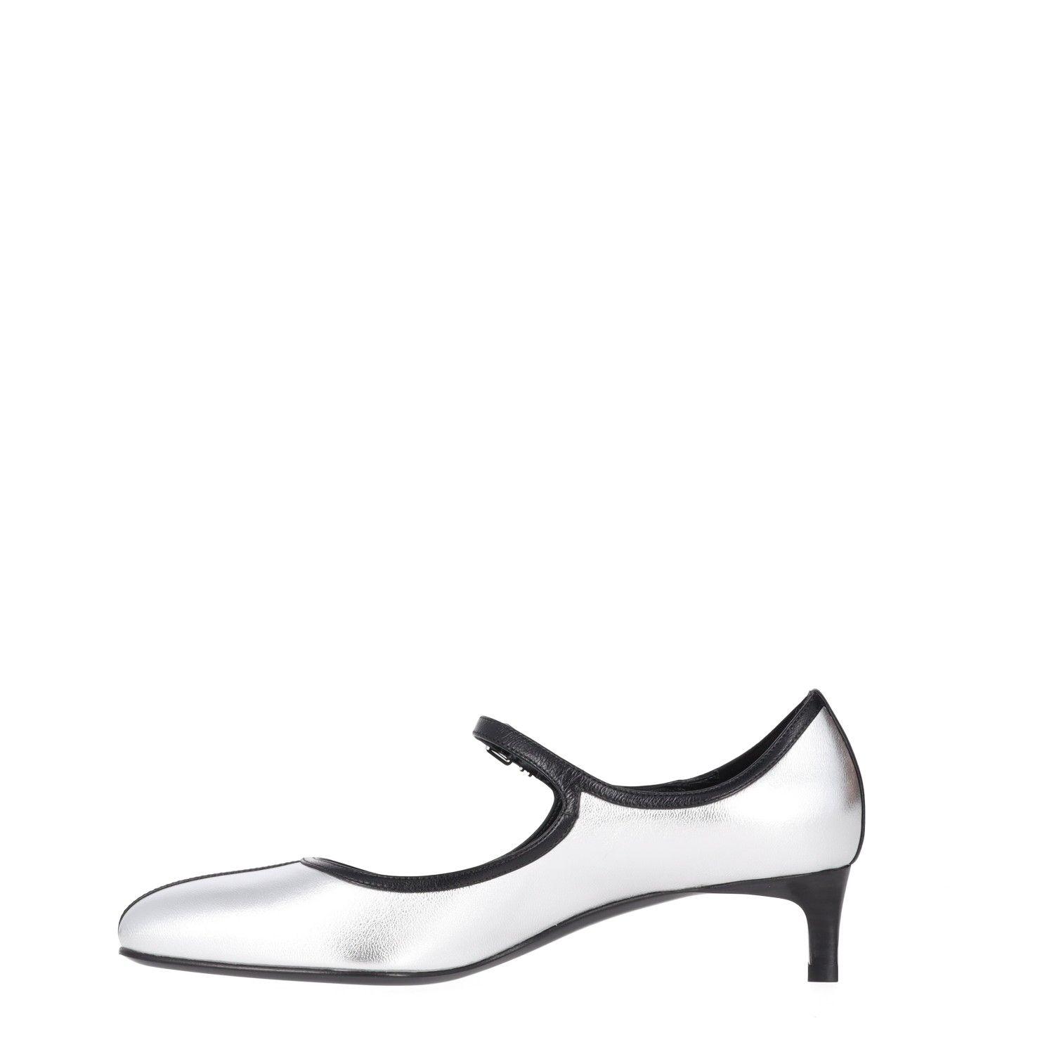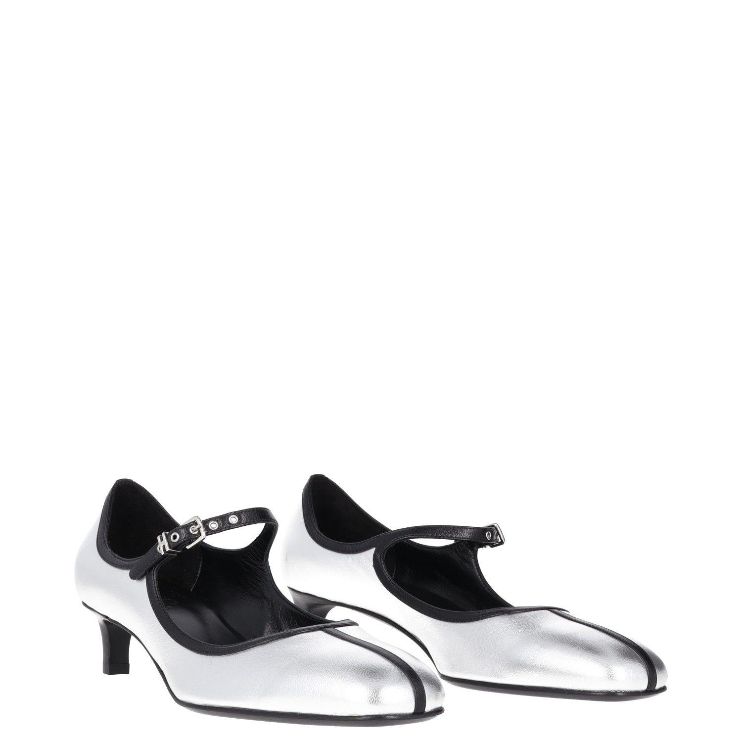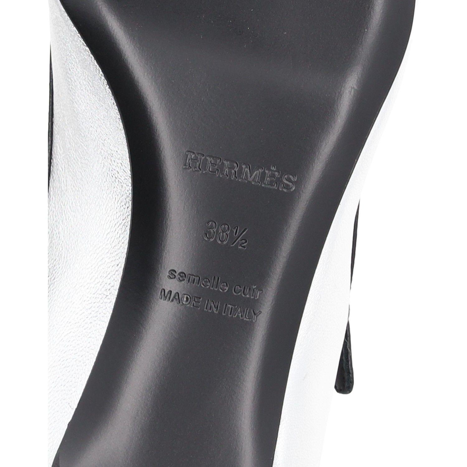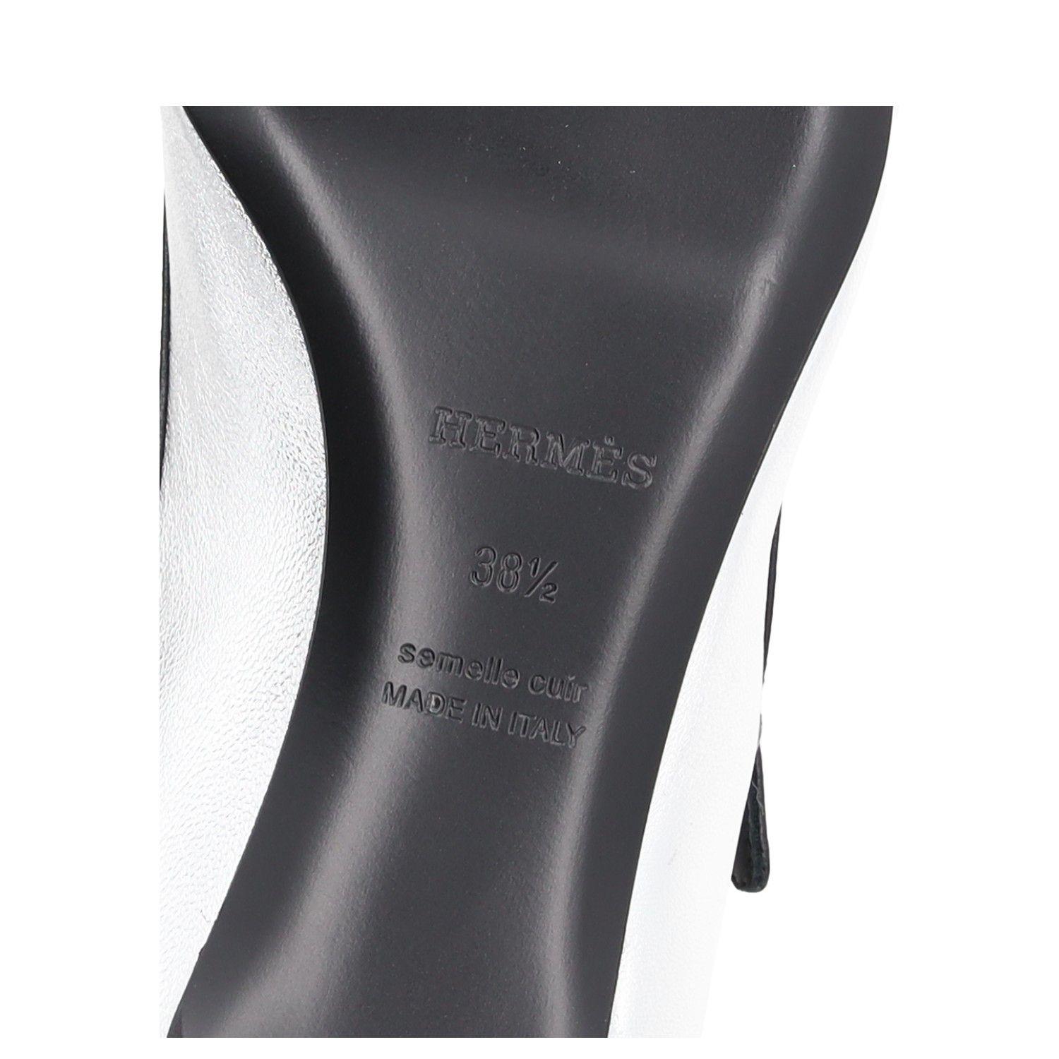 Pump in goatskin with metallic finish and goatskin with iconic "H" buckle and contrasting piping.