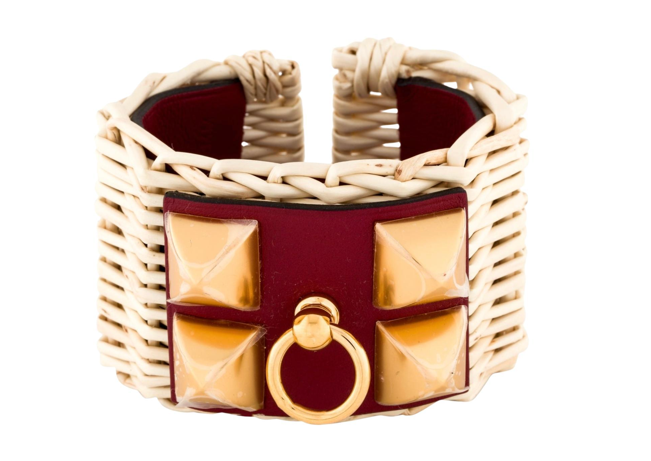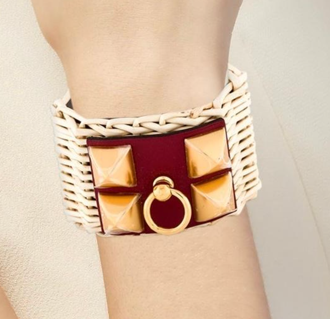 Hermes Raffia And Leather Picnic Cuff