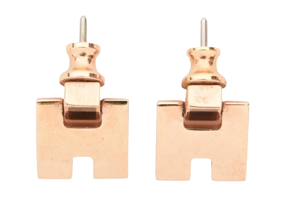 Hermes Rose Gold Plated Enamel Eileen Push Back Earrings
