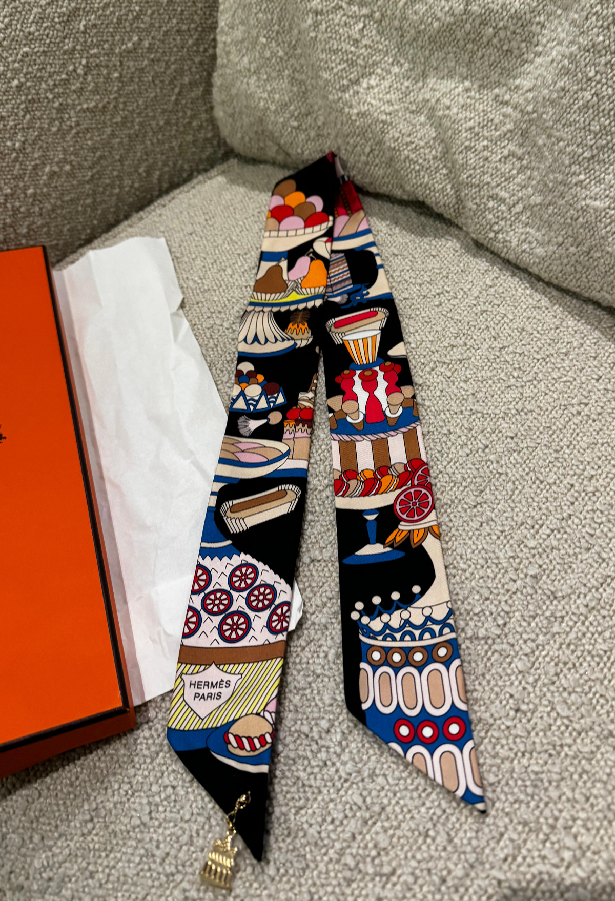 HERMES Silk La Patisserie Francaise Charm Twilly