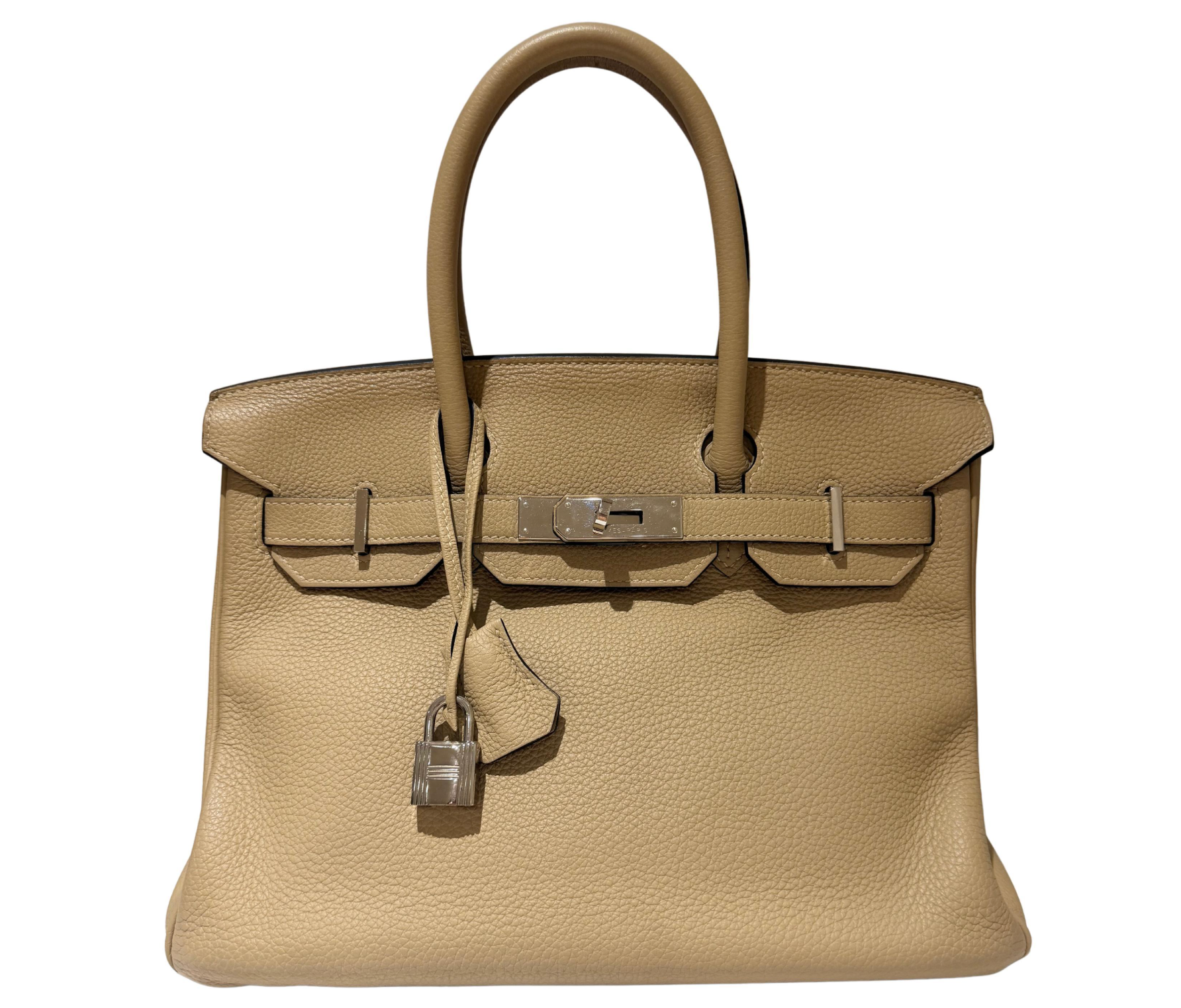 Hermes Birkin 30 Bag in Trench Togo Leather with palladium hardware. Very neutral bag to complete your everyday look.