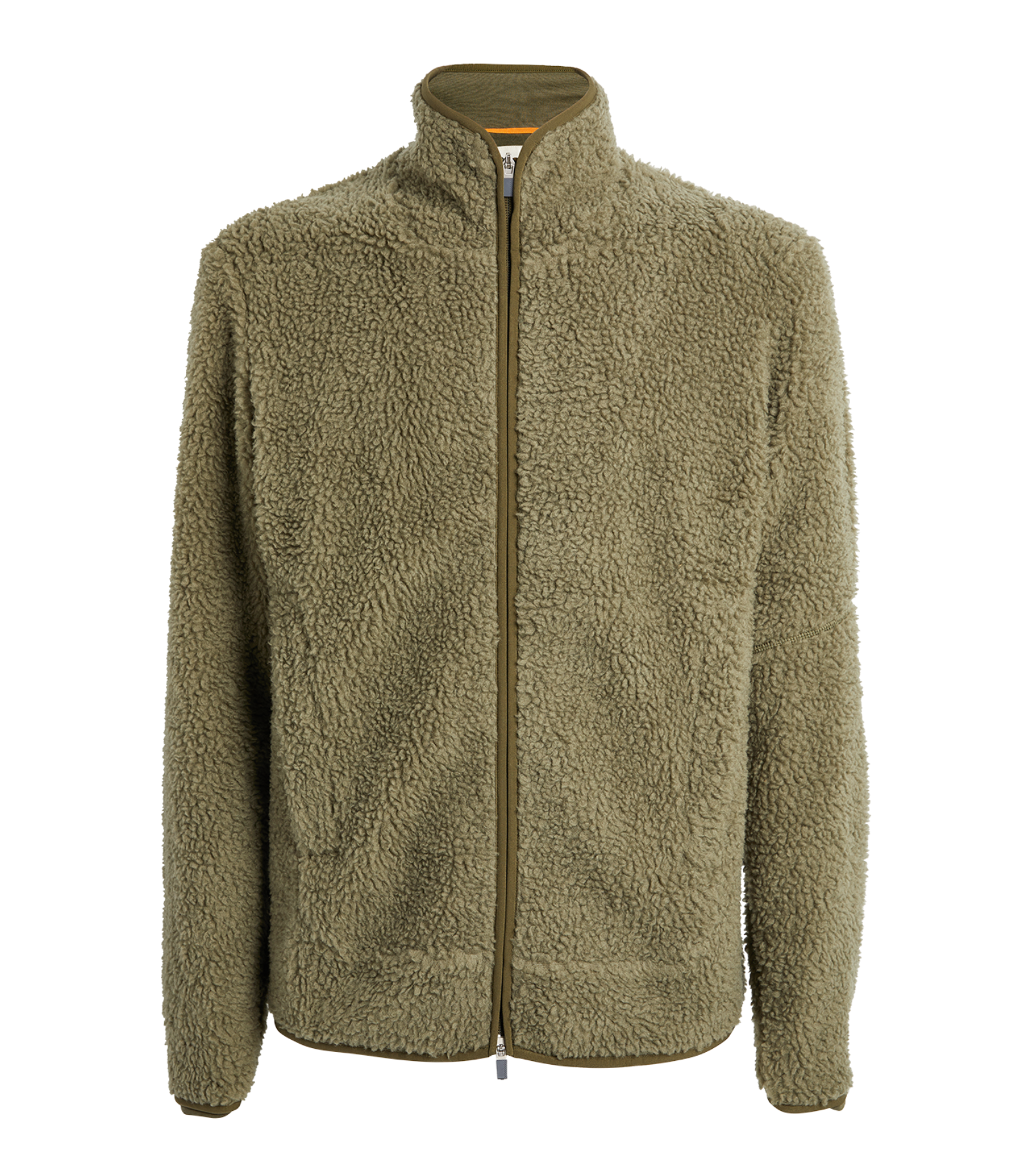 * Design: It features a high-pile "sherpa" texture, a full-length 2-way front zipper, a high stand-up collar, and elasticated cuffs for a secure fit.
