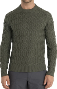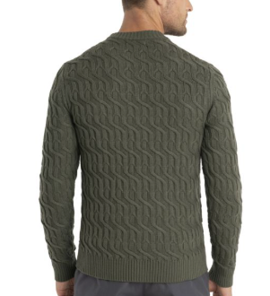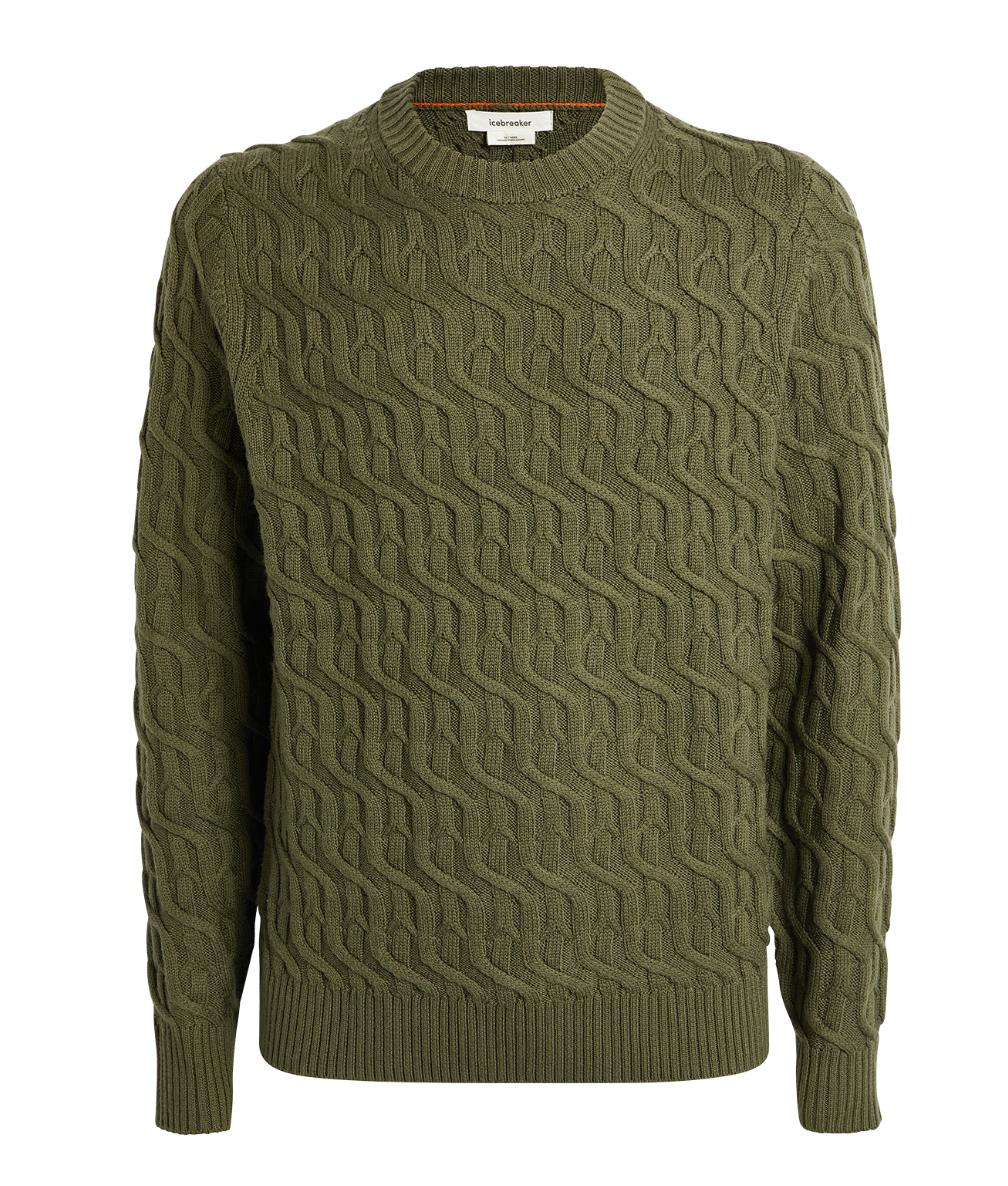 Design: Features a traditional cable knit pattern with a ribbed crew neck and cuffs.