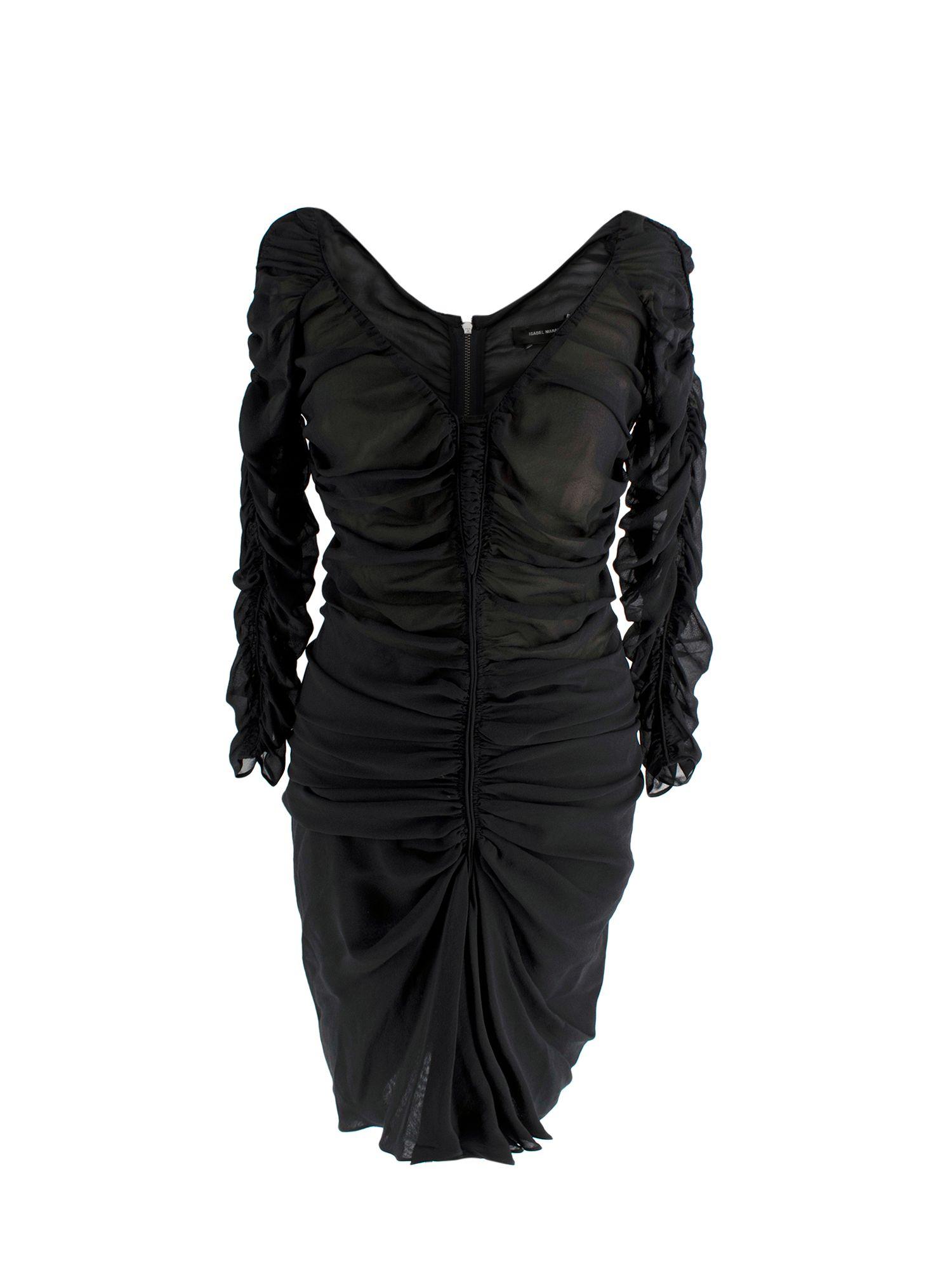 Isabel Marant Black Chiffon Ruched Mini Dress