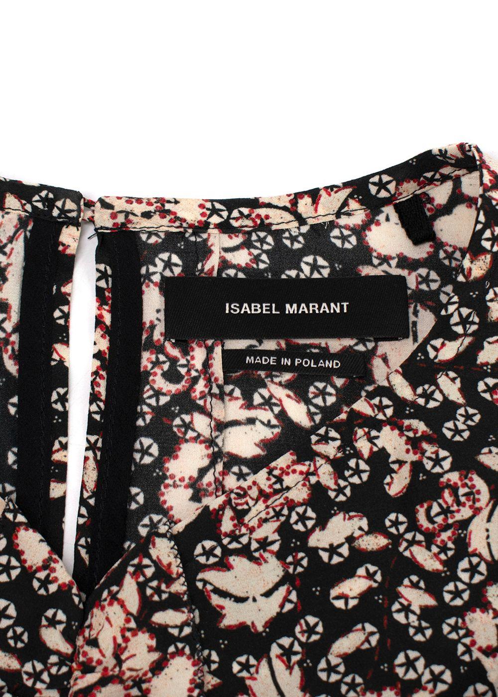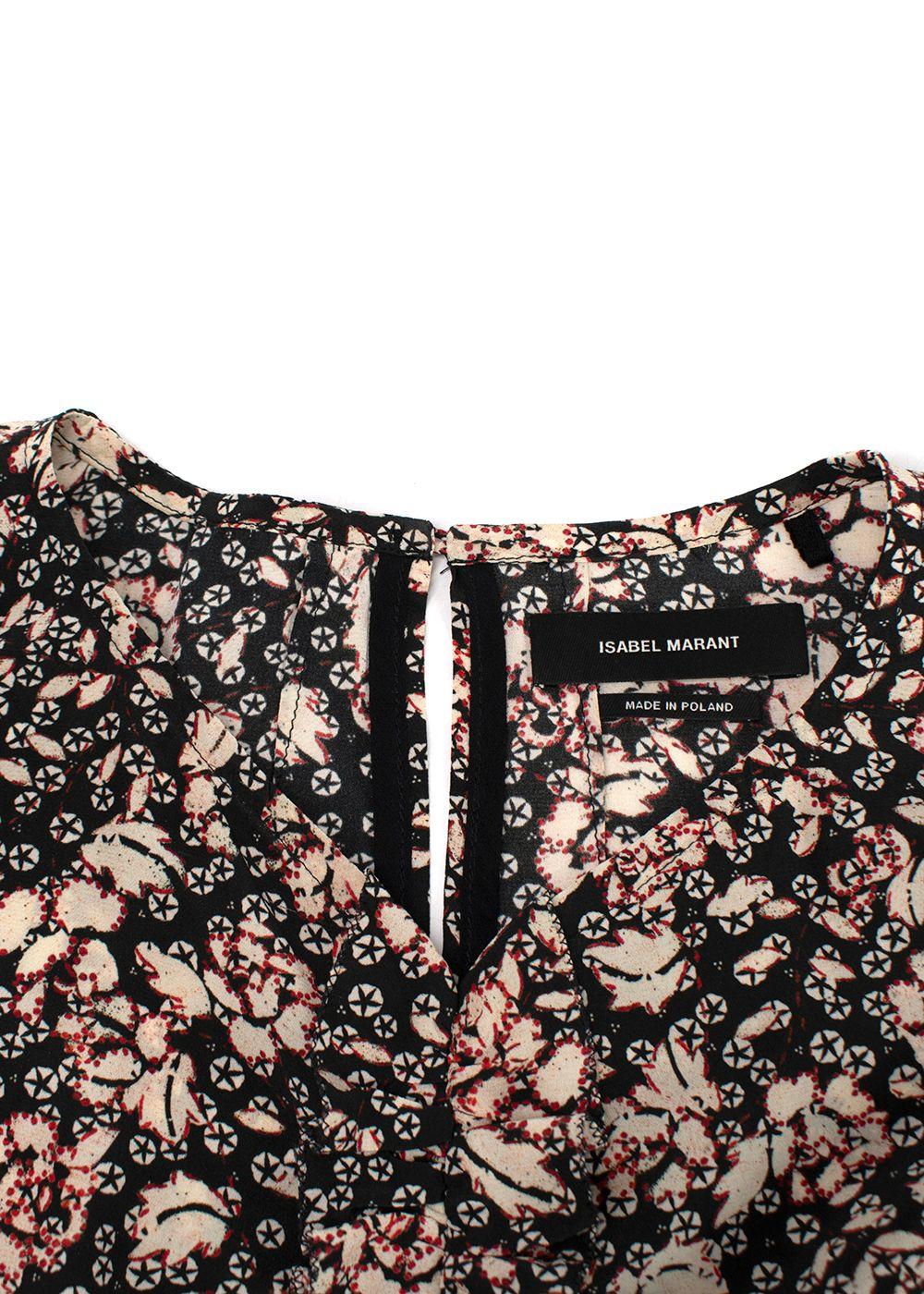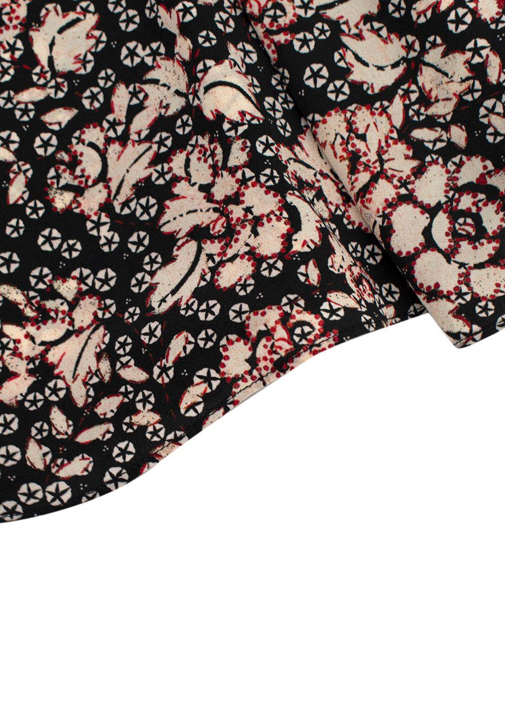 Isabel Marant Black Floral Puff Sleeve Silk Blouse