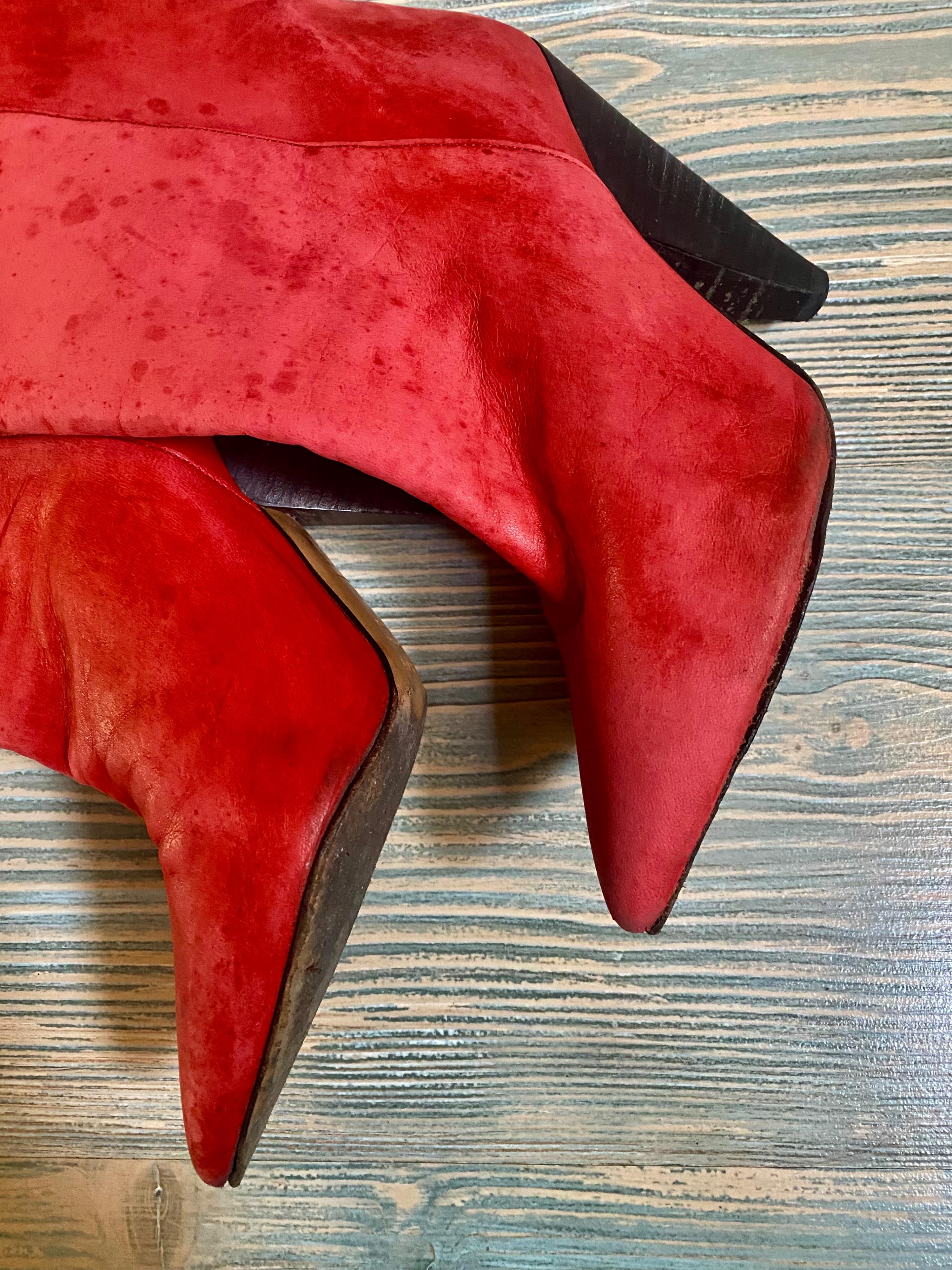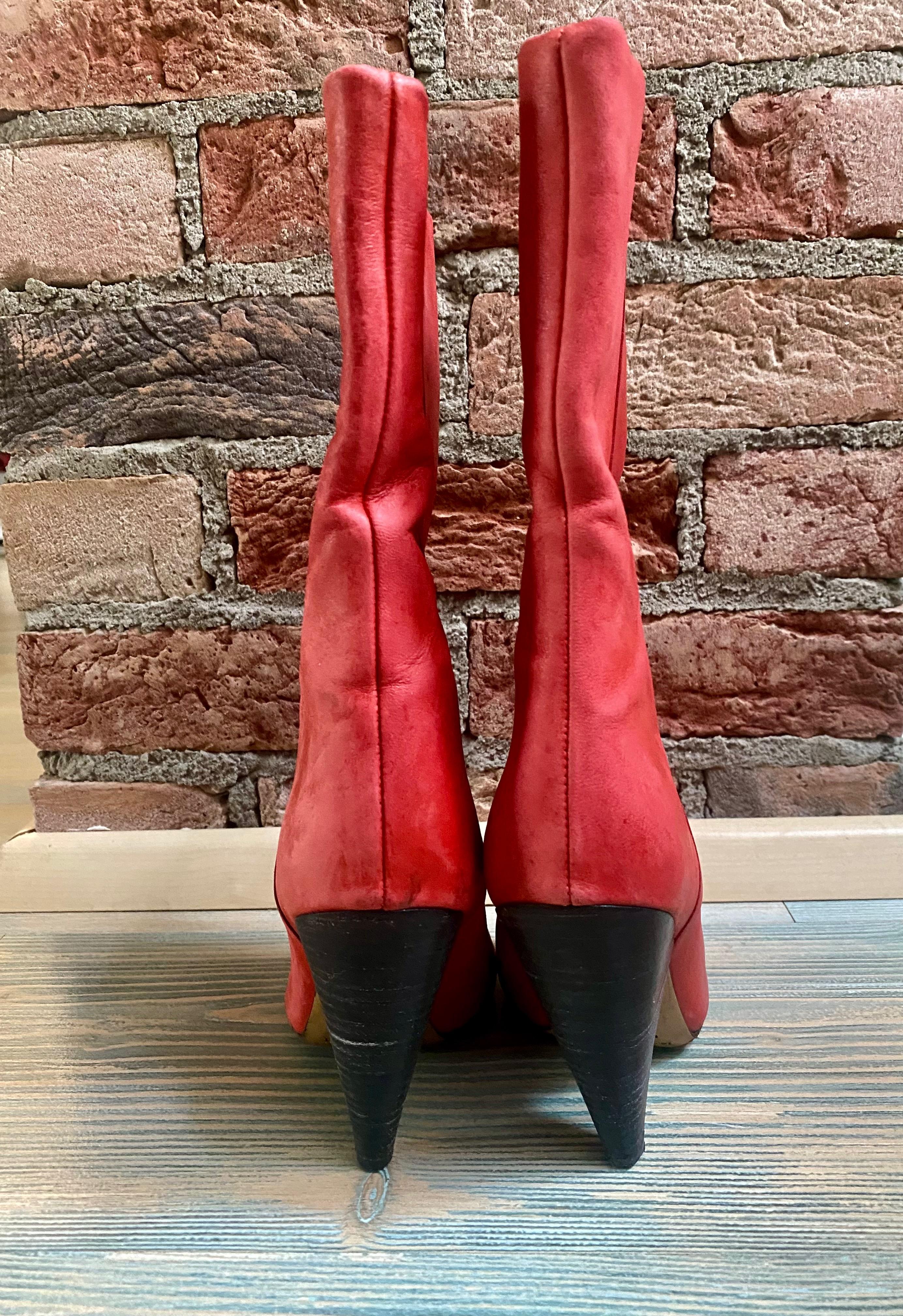 Softest red leather with black cone heel. Perfect for everyday wear or/and to make a statement at night.