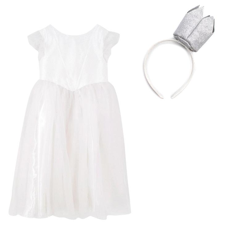 Jacadi Girls White Tulle and Glitter Dress with Crown Headband