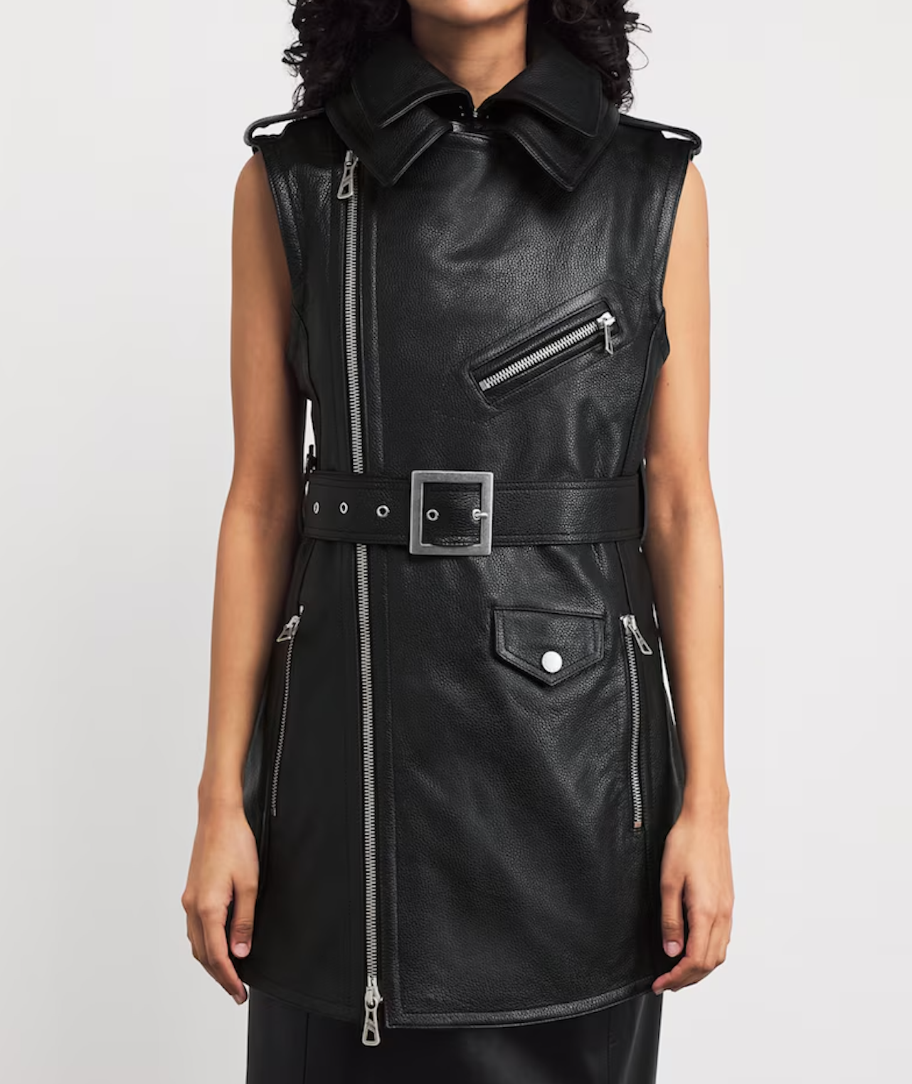 1 front zipped pocket, 1 front press-stud pocket, 2 side zipped pockets