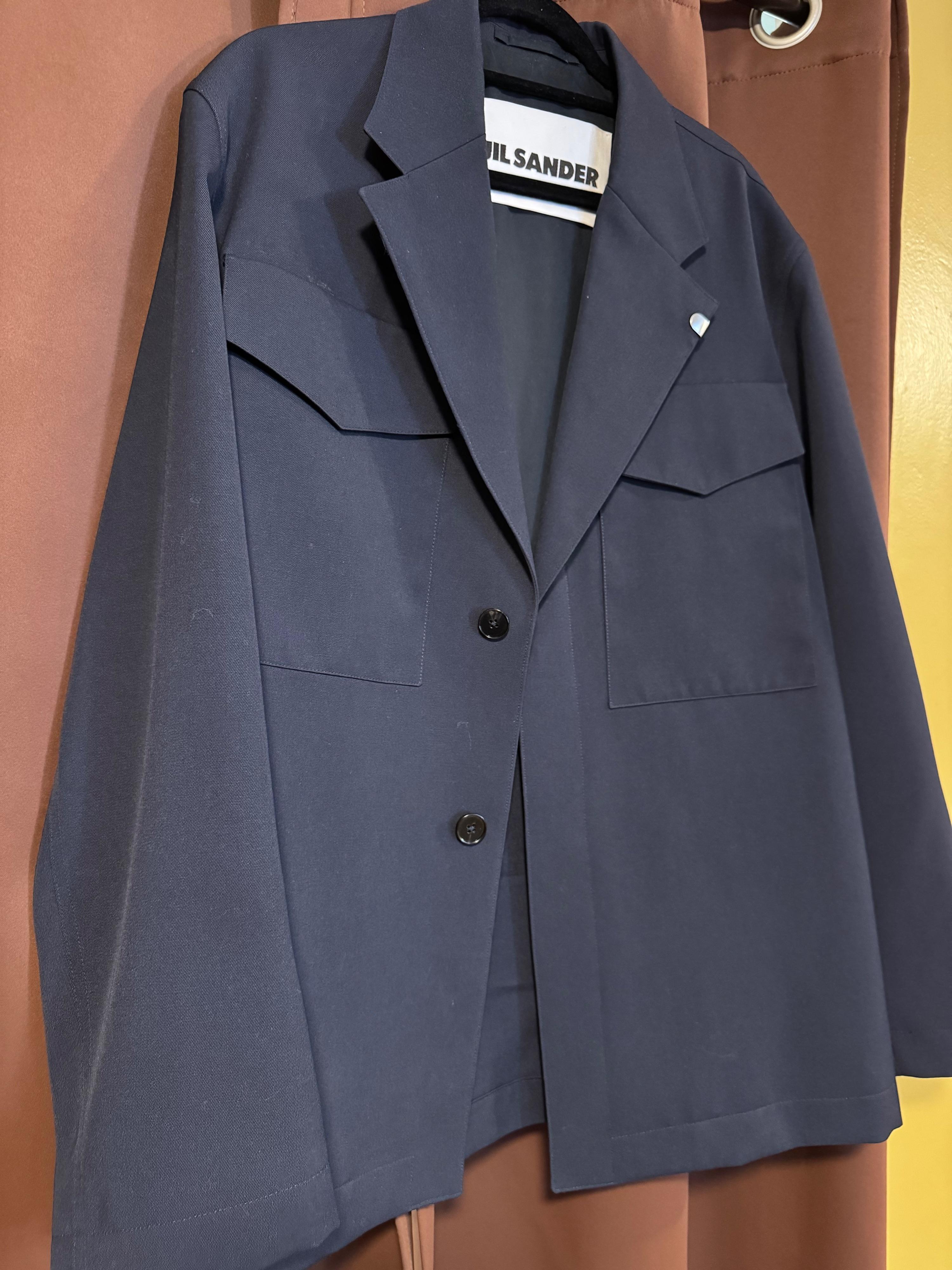 Jil Sander Navy Blue Gabardine Wool Jacket