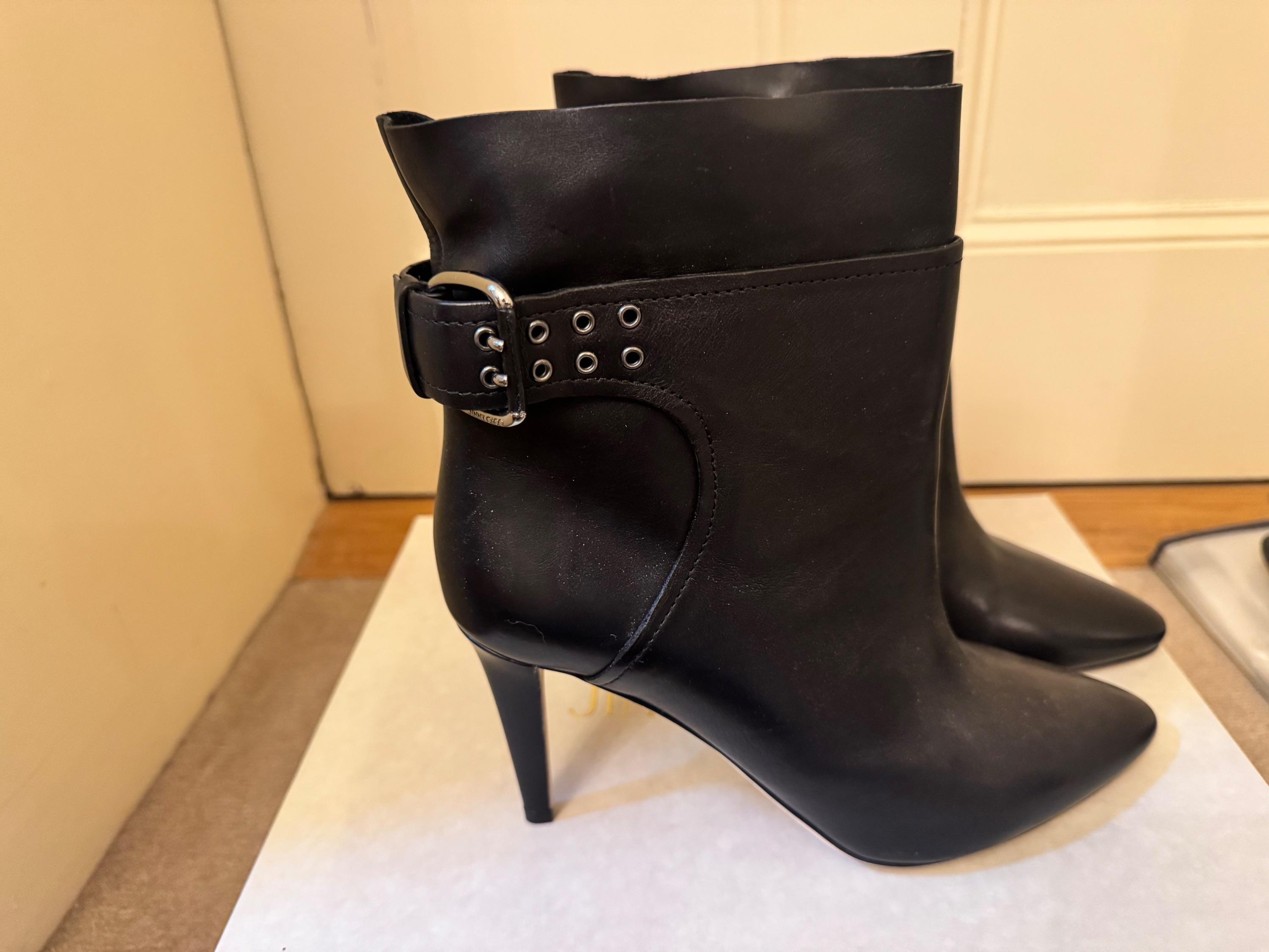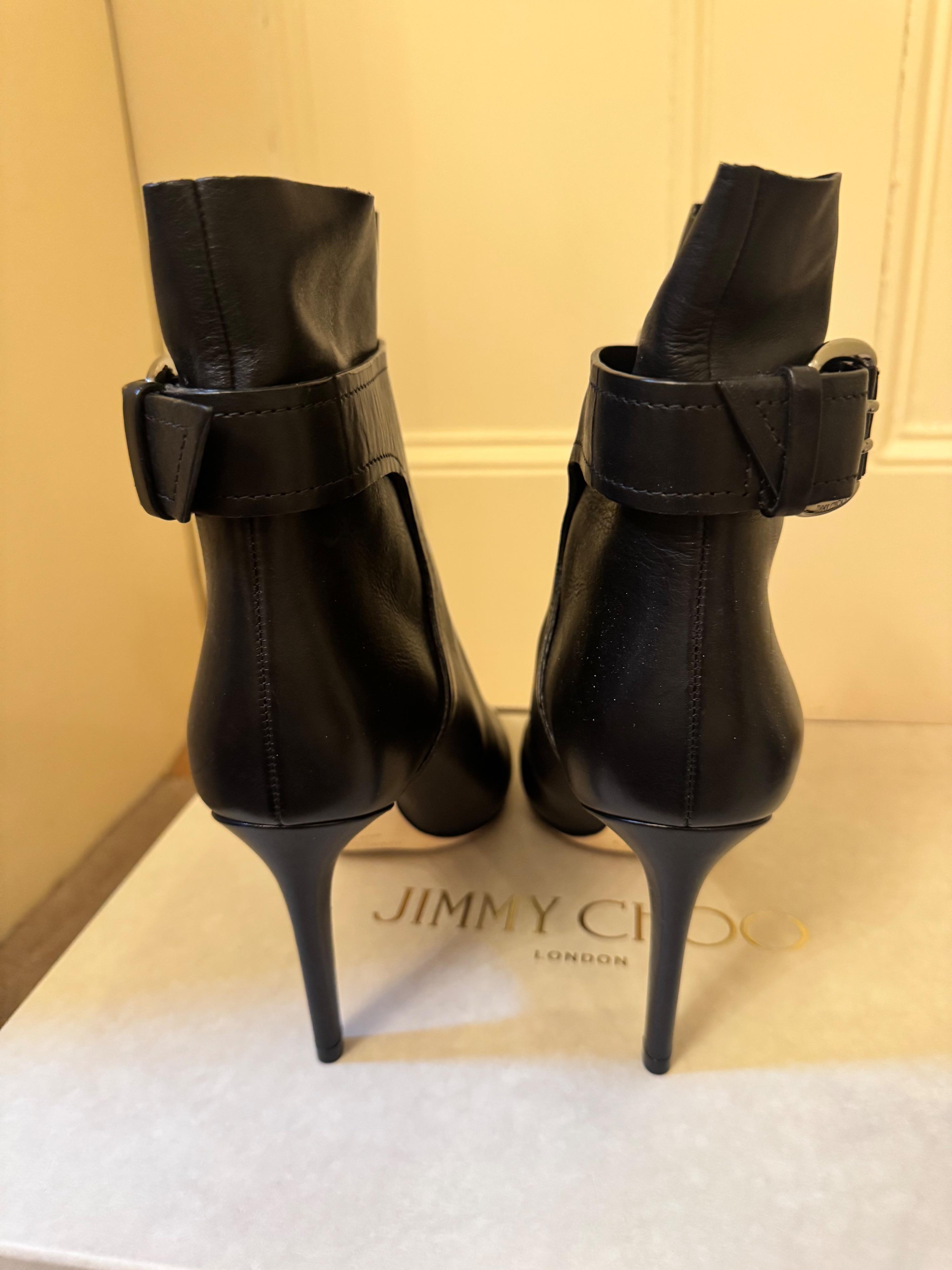 Jimmy Choo Black Leather Buckle Detail Ankle Boots