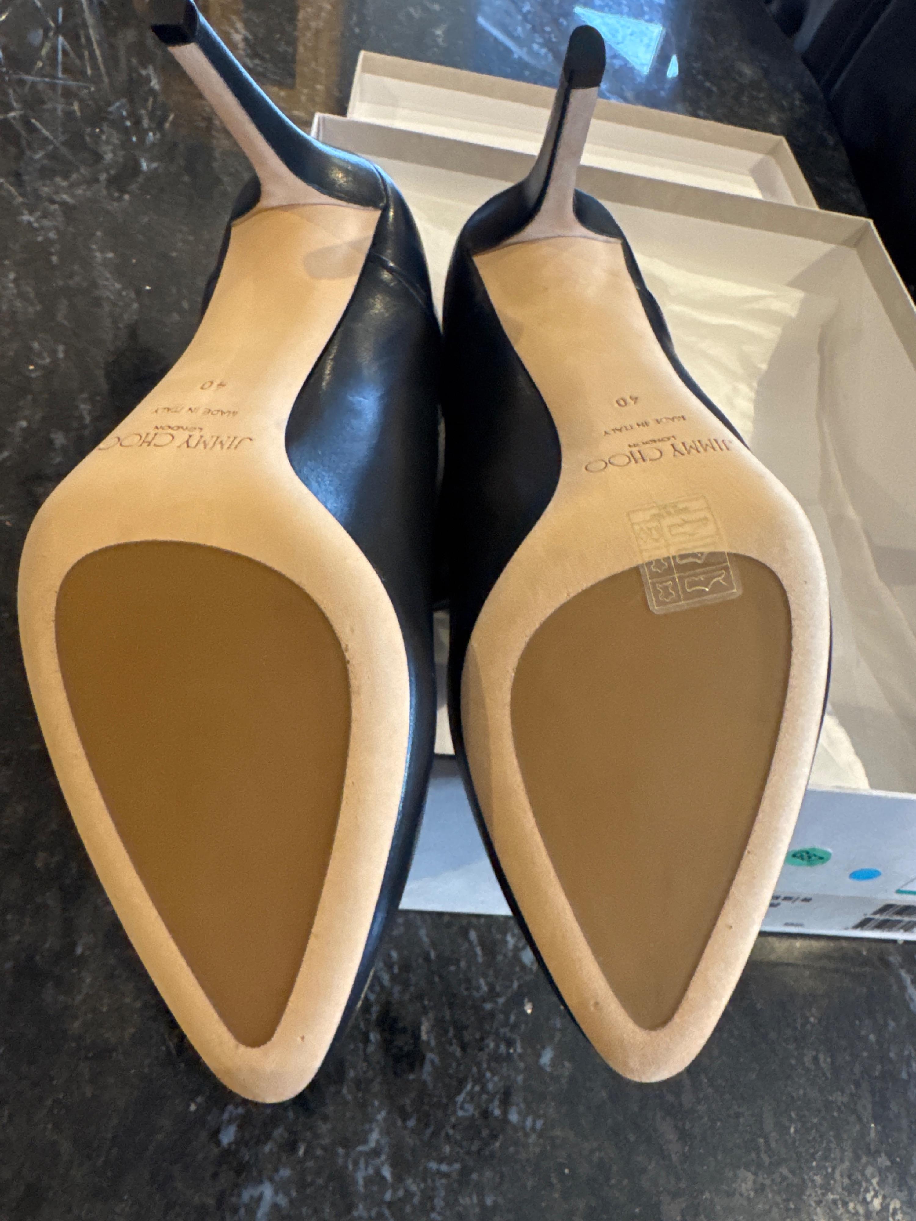 Beautiful black ankle boots with buckle detail.  Heel 85mm high.  Never worn with labels and box dust bag etc.