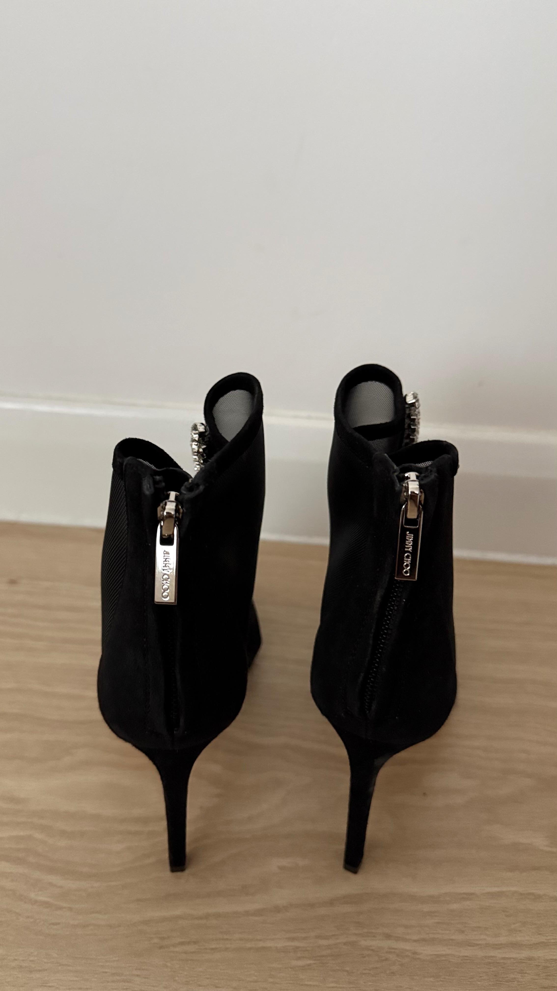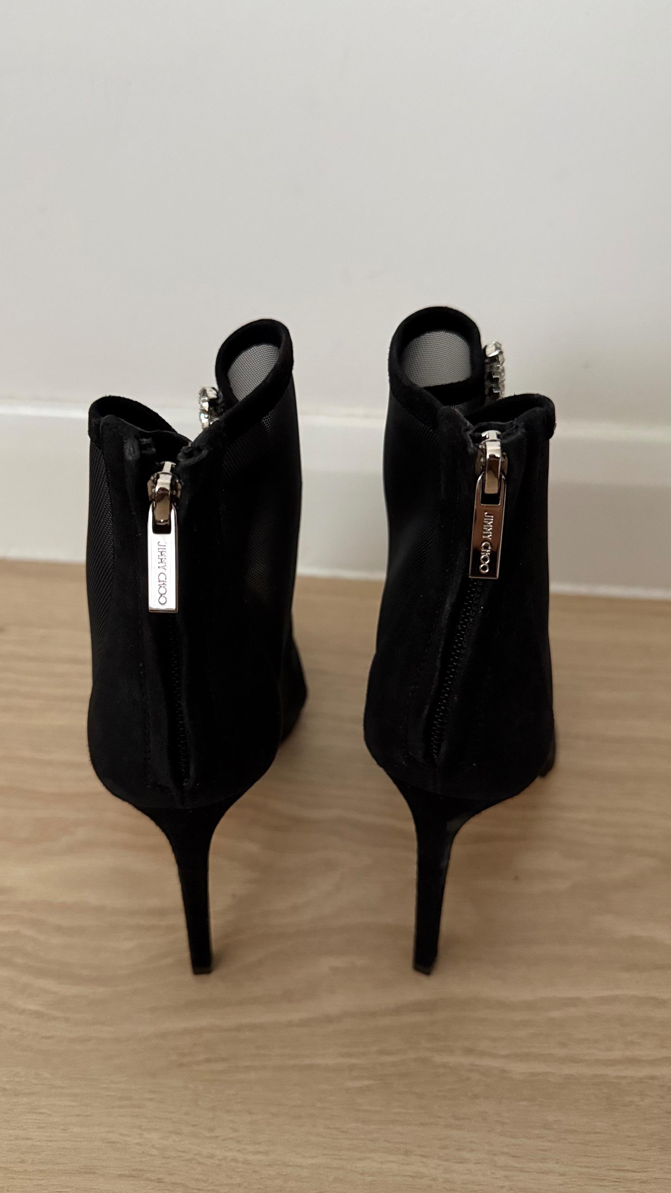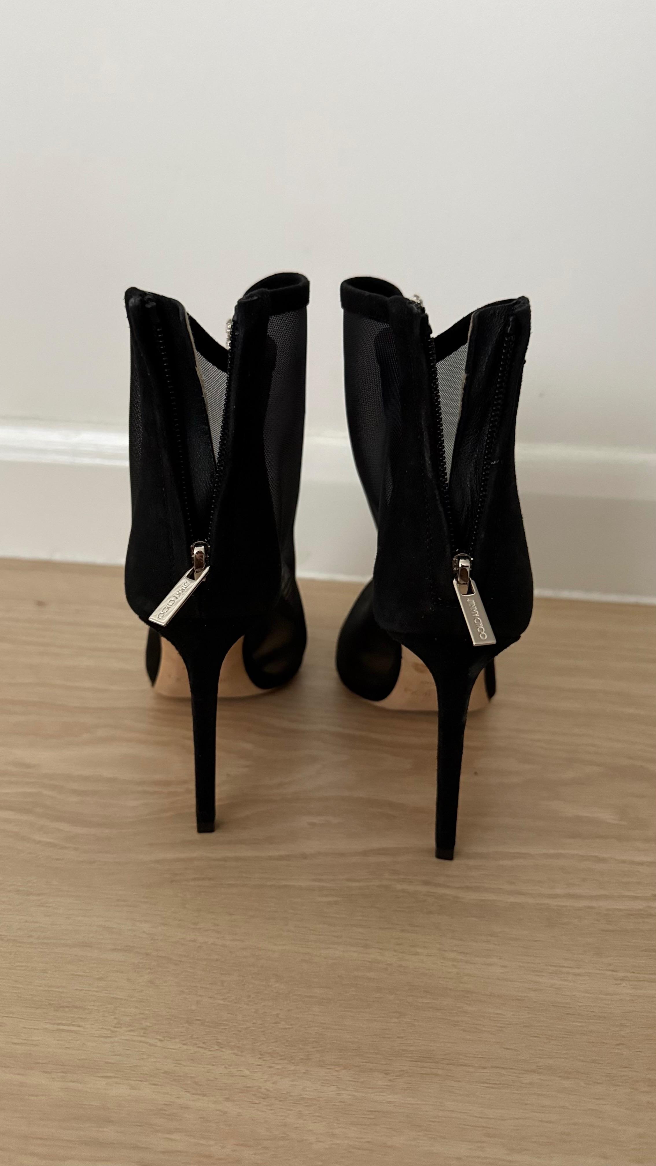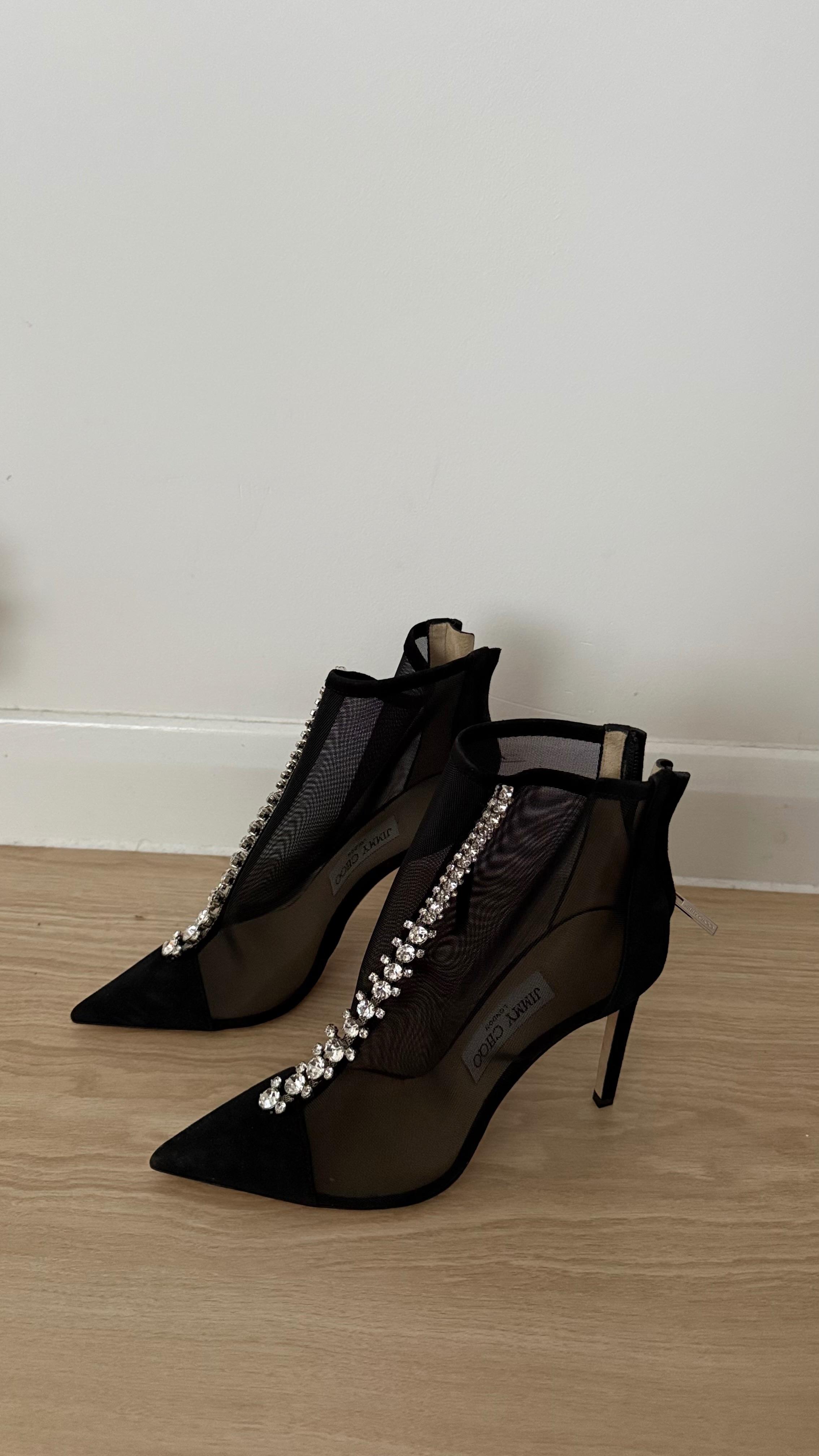 Jimmy Choo Kix 100 Black Mesh Crystal Ankle Boots – Size 37