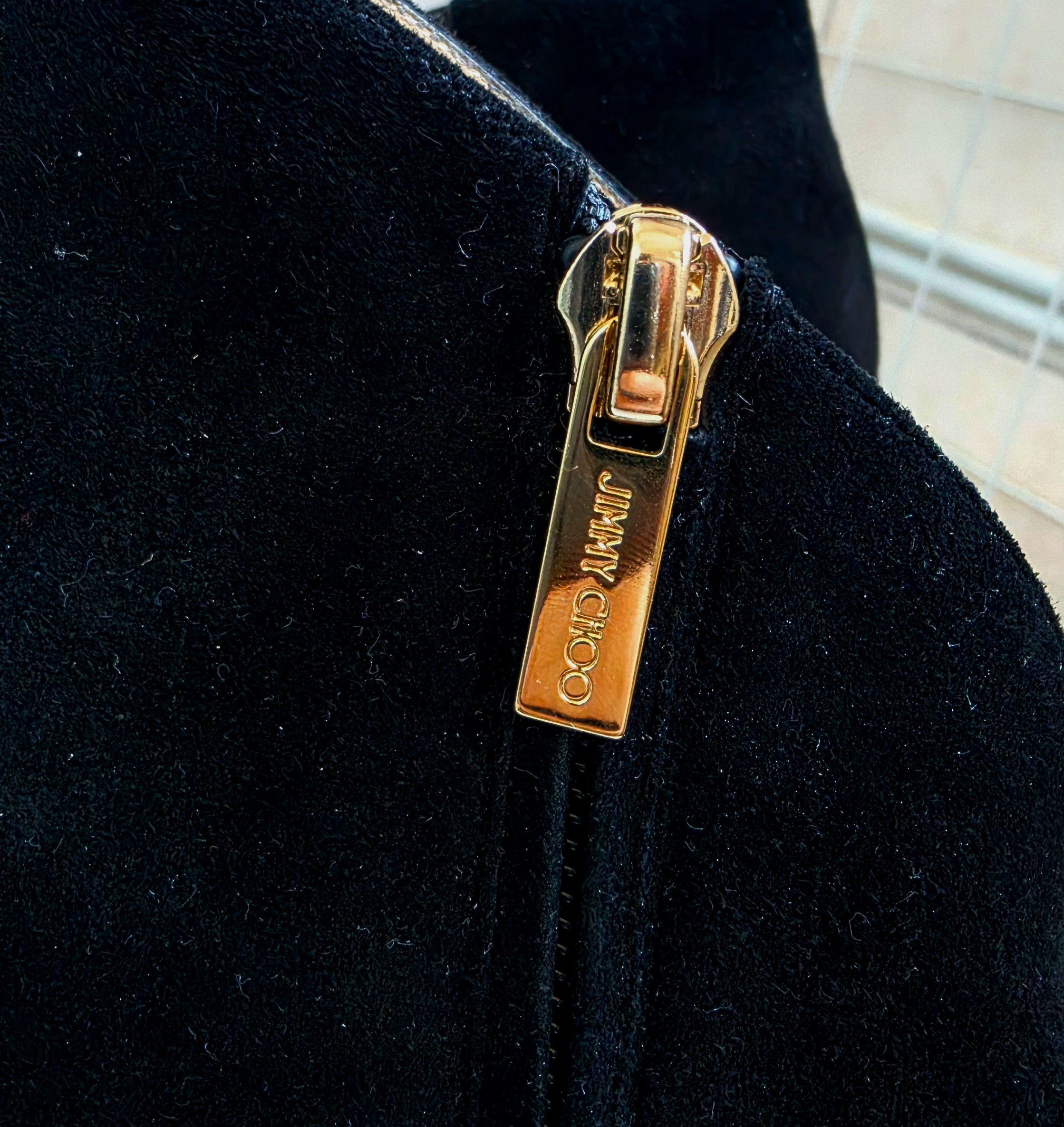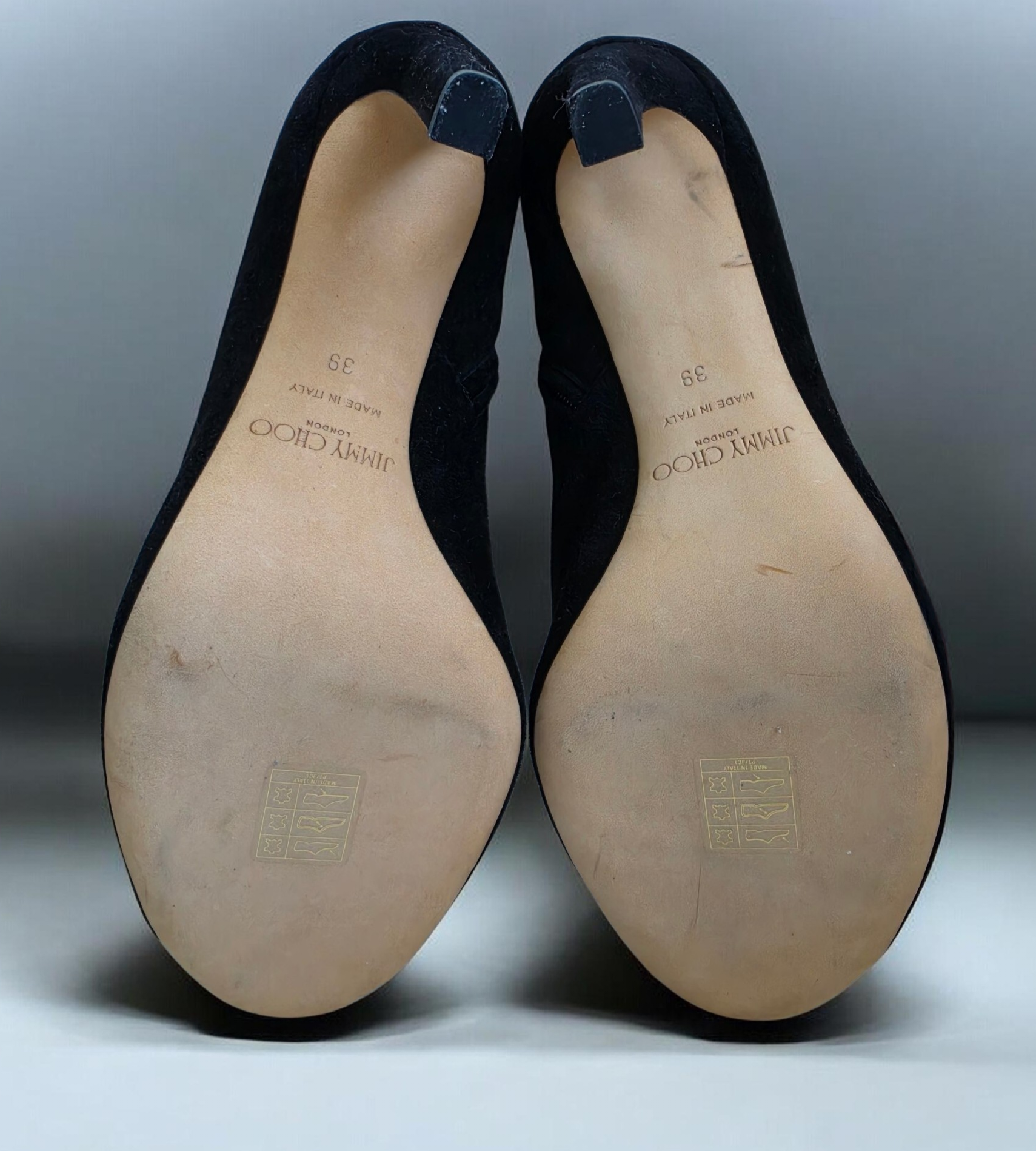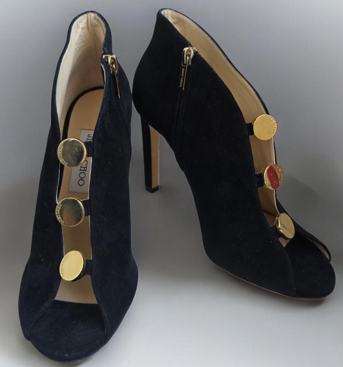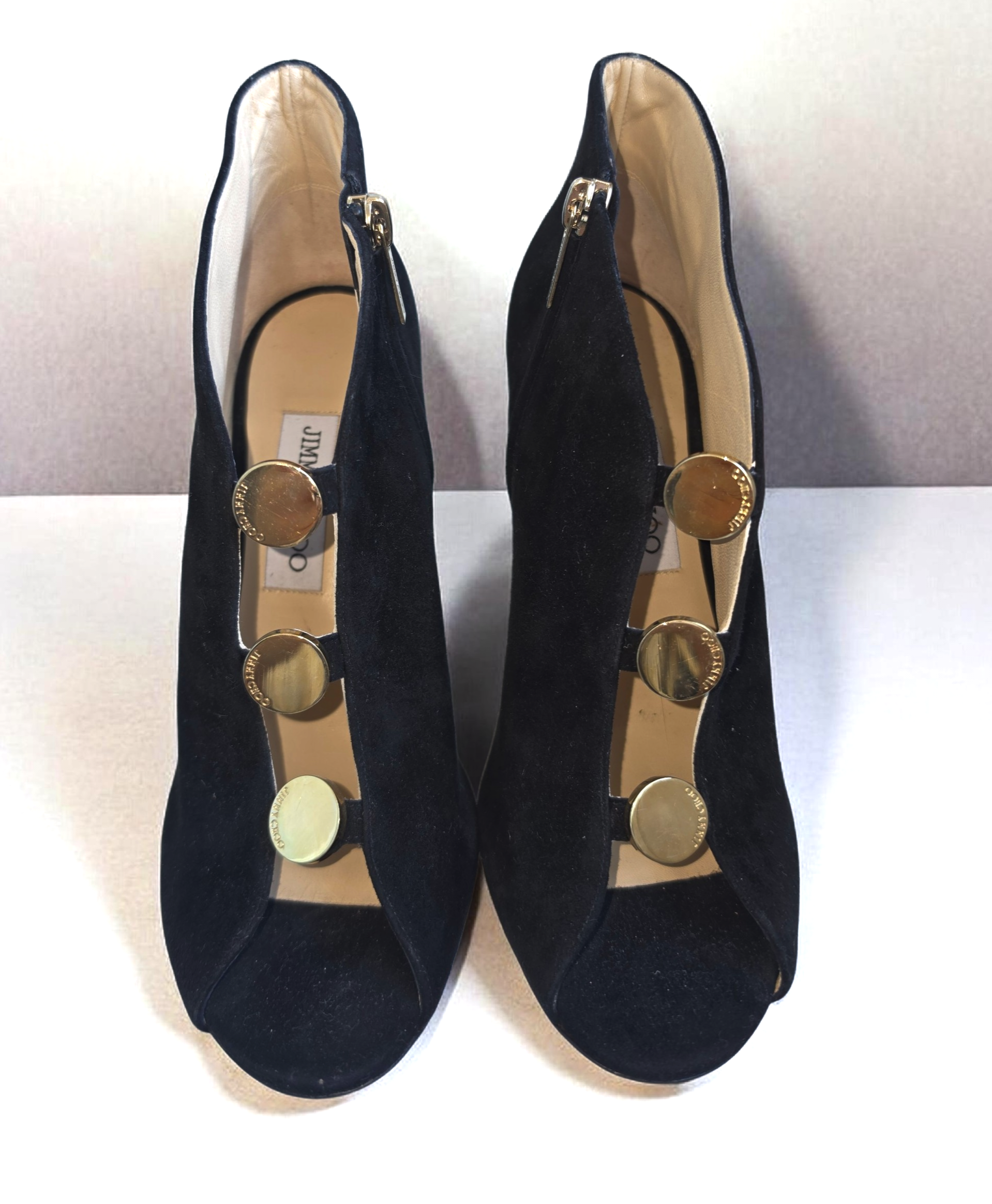 Jimmy Choo suede Lorna 110 vamp peep toe booties.