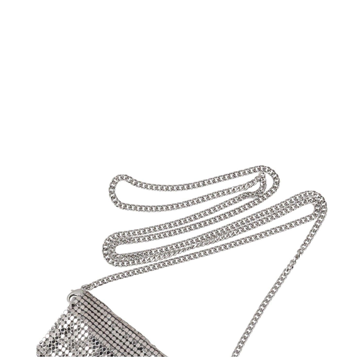 Strap: Long silver-tone chain for crossbody or shoulder wear.