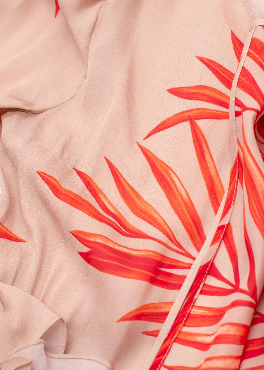Johana Ortiz Beige and Orange Palm Print Ruffled Silk Maxi Dress