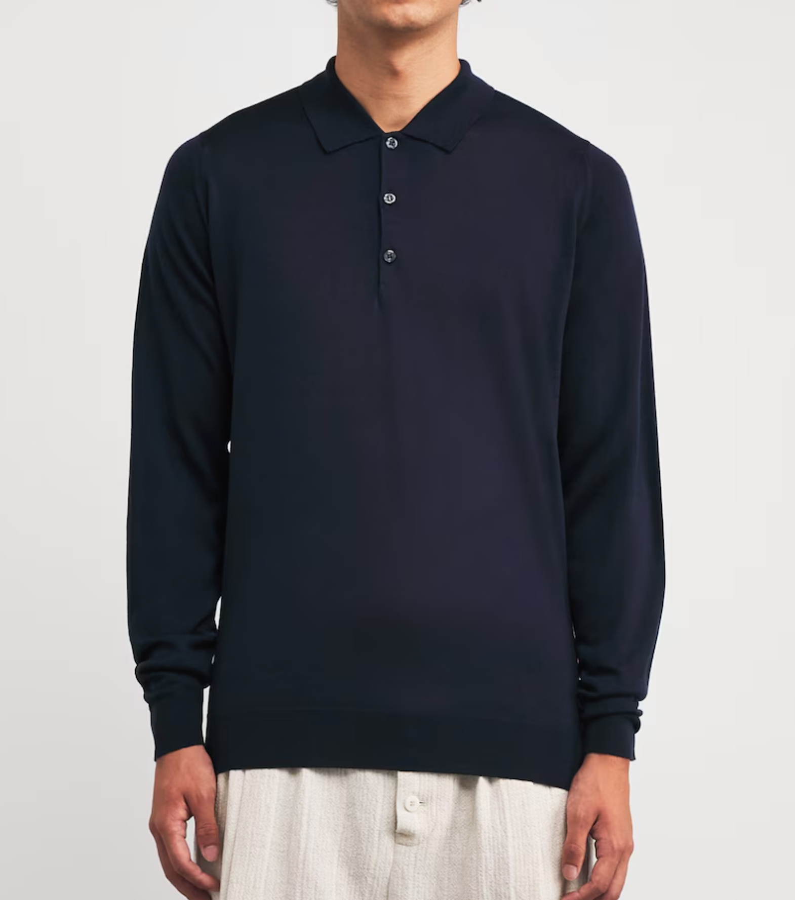 John Smedley Extra Fine Merino Long-Sleeve Herbie Polo Shirt