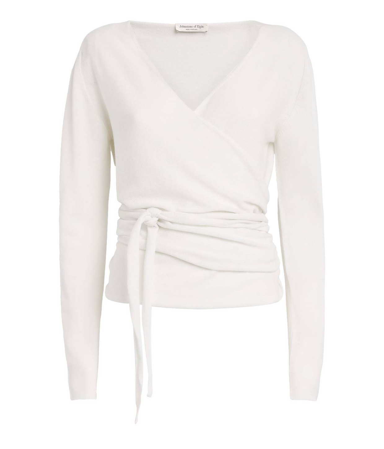 Johnstons Of Elgin White Cashmere Wrap Cardigan