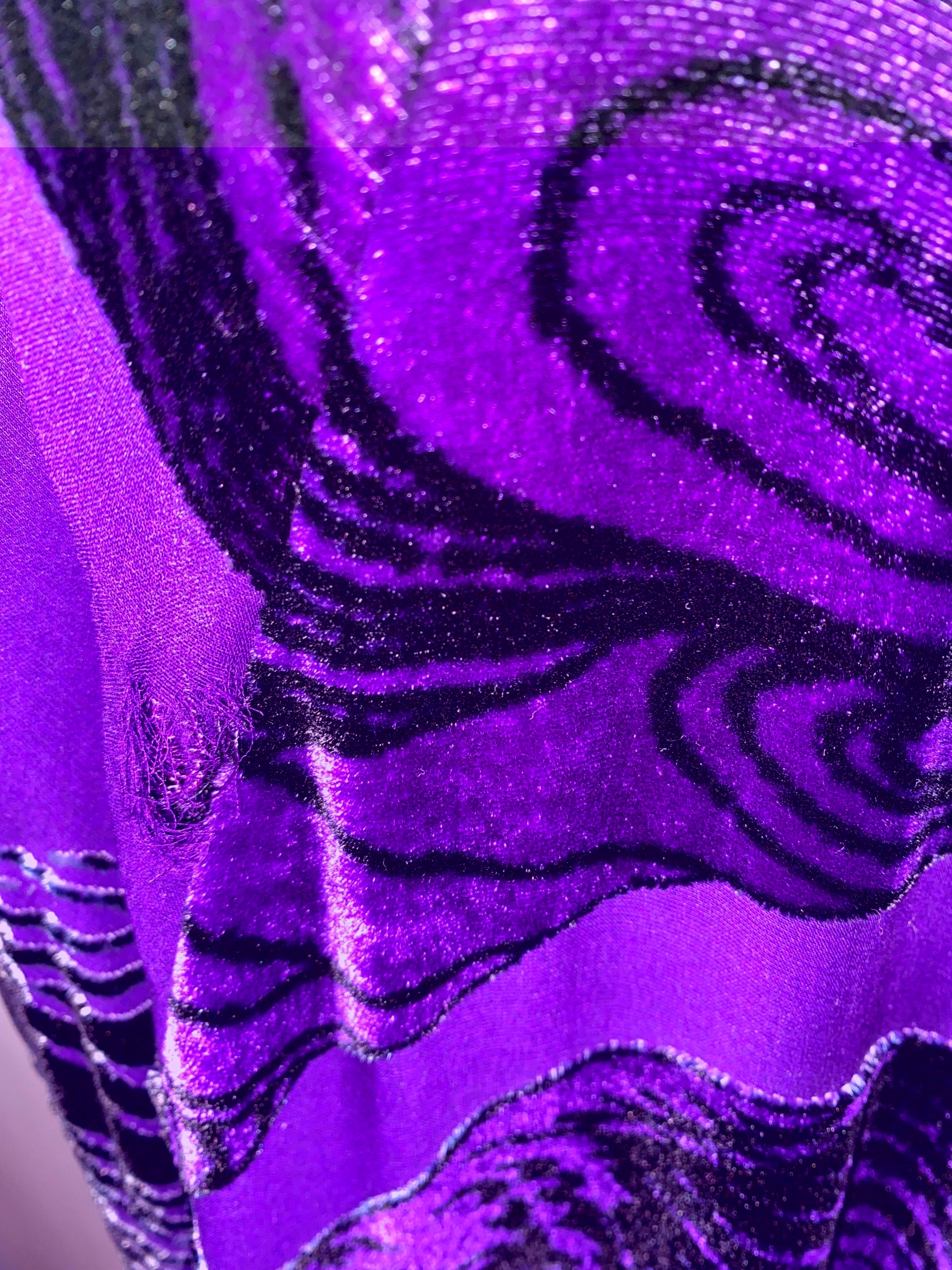 Beautiful velvet silk evening dress. Shoe string straps cross over on the back to very low backless dress. Matching shawl. Slight damage at the bottom of the zip.