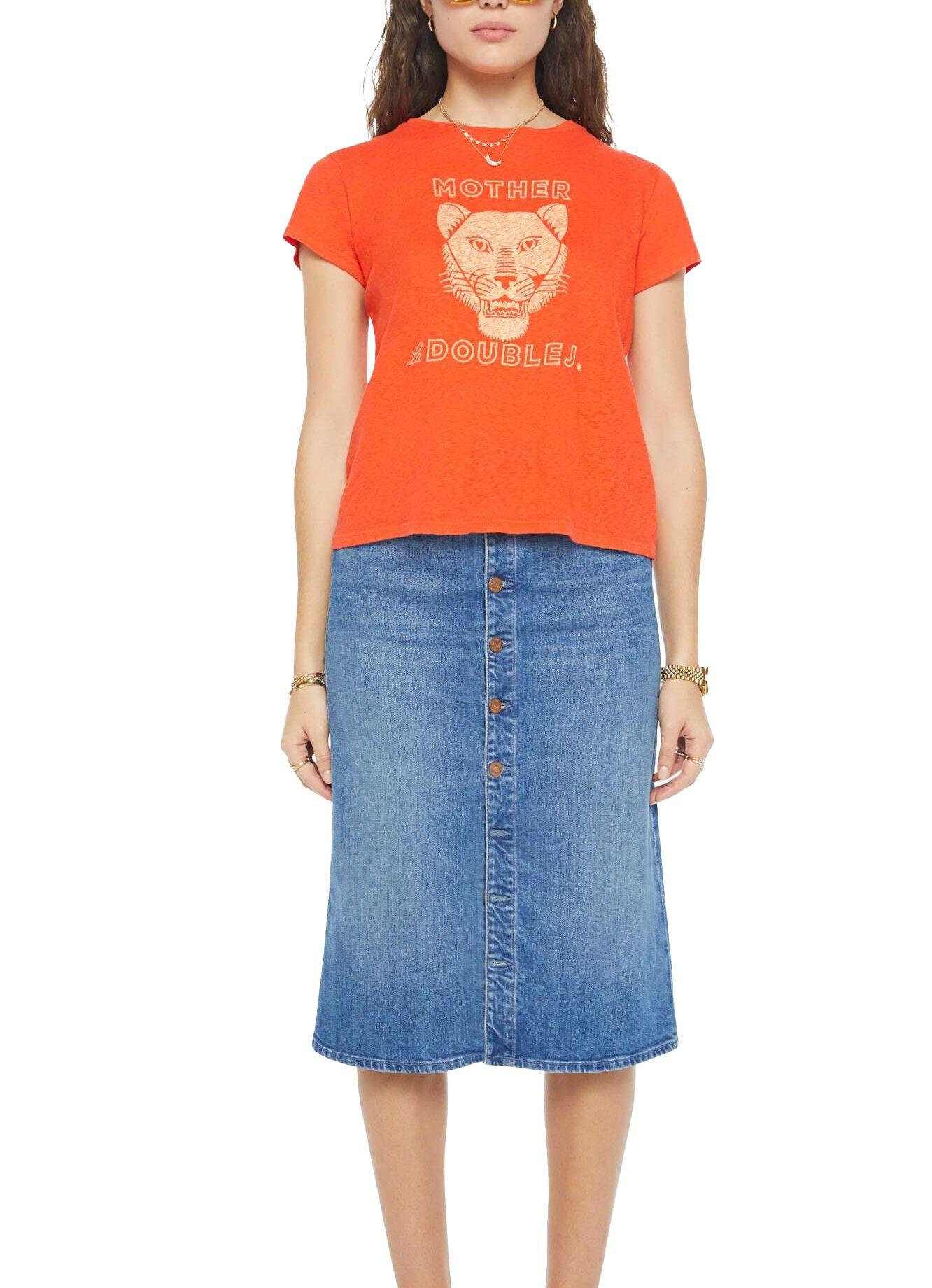 A classic crew with a twist, this tee arrives as part of the Ciao Mamma! collaboration between La Double J and MOTHER. With a slim fit for a vintage look and feel, we've adorned this juicy arancia top with a fierce panther on the front, representing self-empowerment and passion. Get roaring, ragazza!