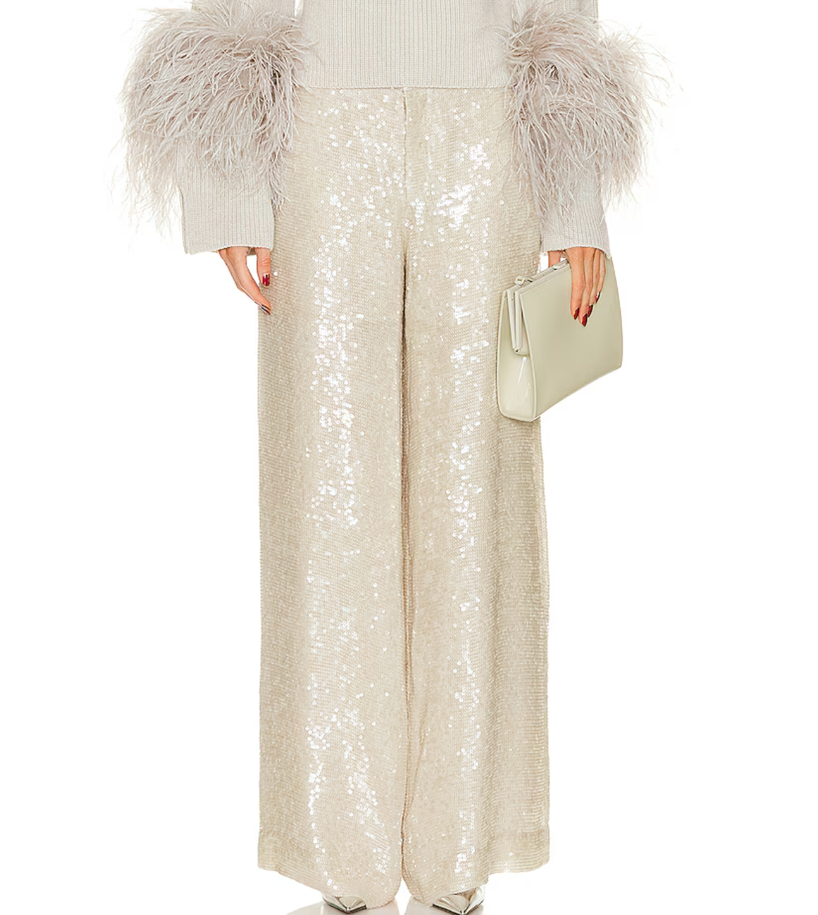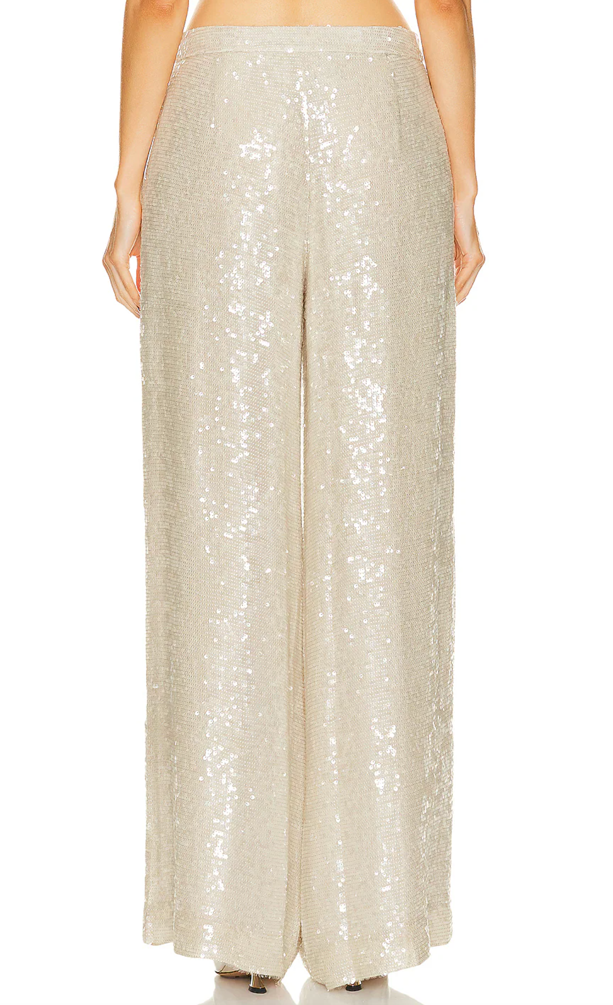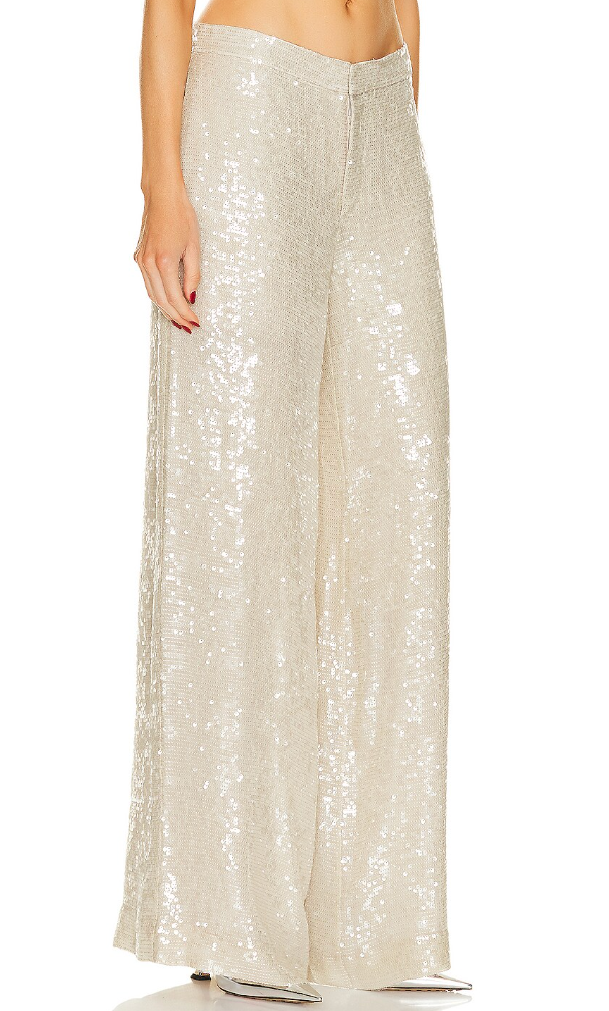 Self: 100% viscosLining: 100% polyester. Dry clean only. Zip fly with hook and bar closure. Side seam slip pockets. Allover sequin detail.