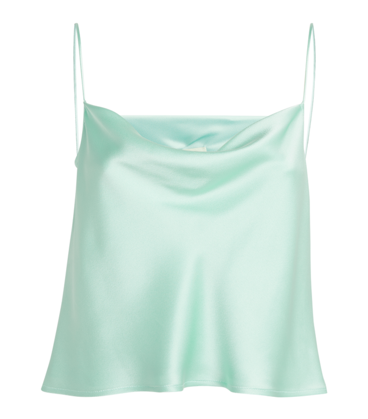 LAPOINTE's stunning camisole is crafted of a silky twill creating a fluid design. Topped with a cowlneck, this piece features thin spaghetti straps.
