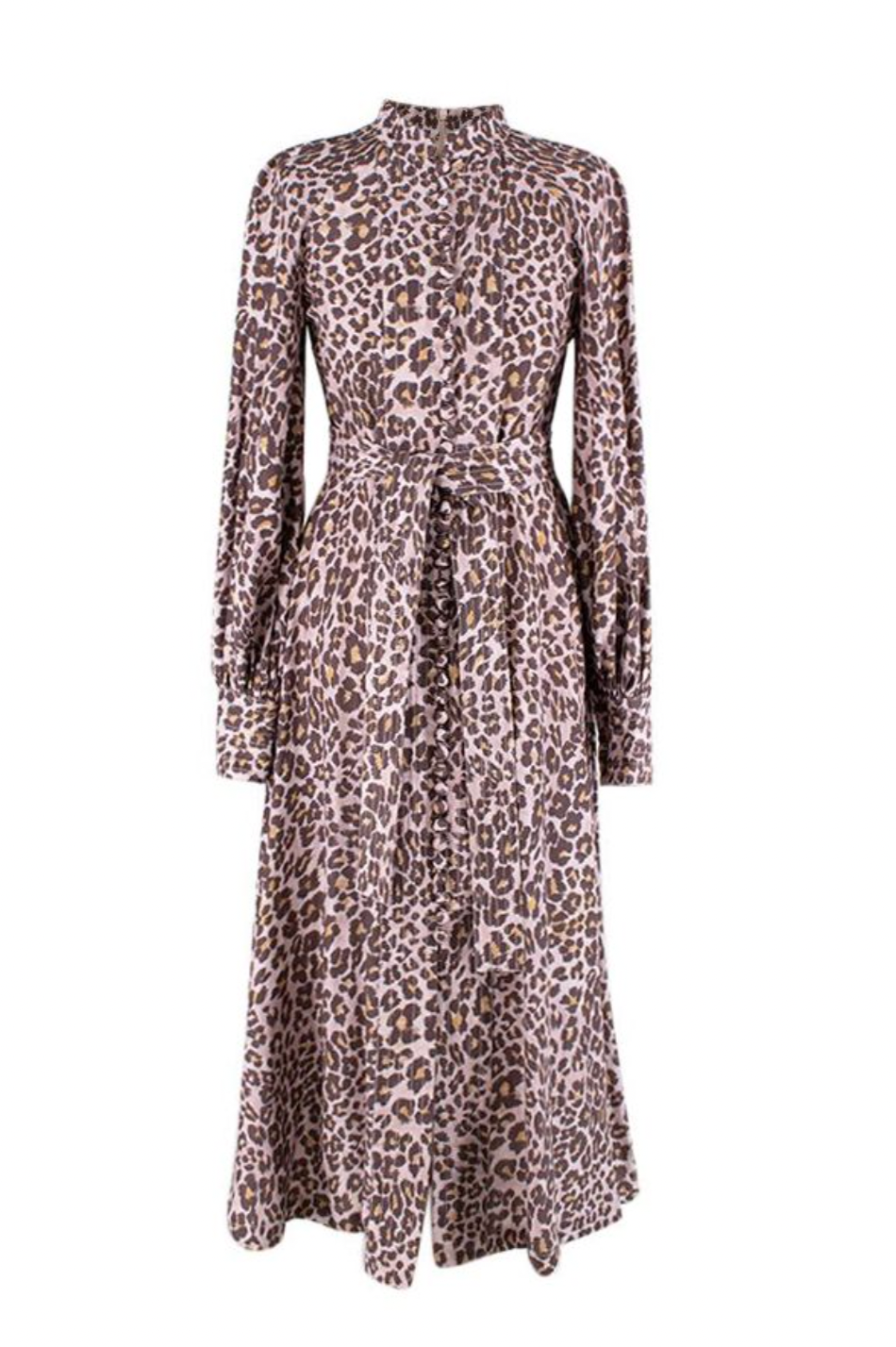 Zimmermann Leopard Print Silk Belted Midi Dress
