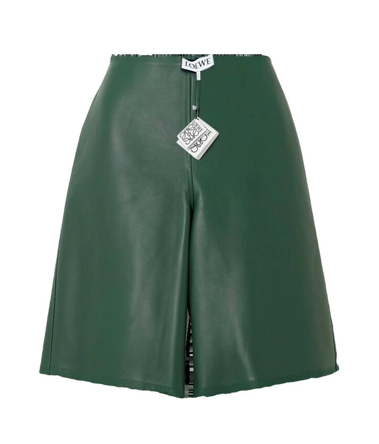 Loewe Green Distressed Leather Shorts
