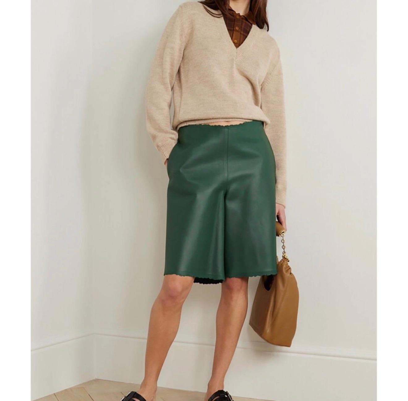 Crafted from 100% supple lambskin in a rich deep green, these shorts feature: